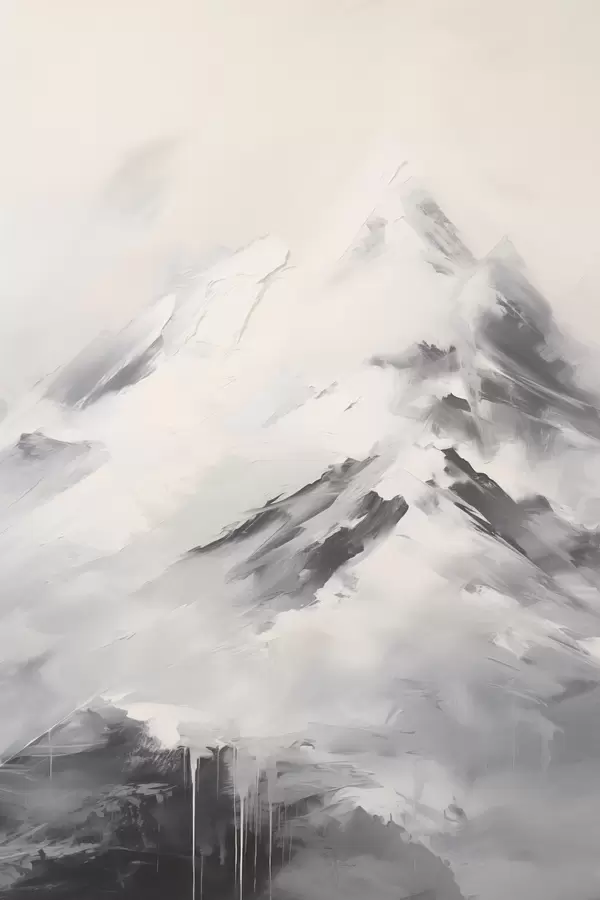 Poster Verschneite Berggipfel mit grauen Schatten, grauer Himmel, Pinselstriche, strukturiert, minimalistisch Nr f45932