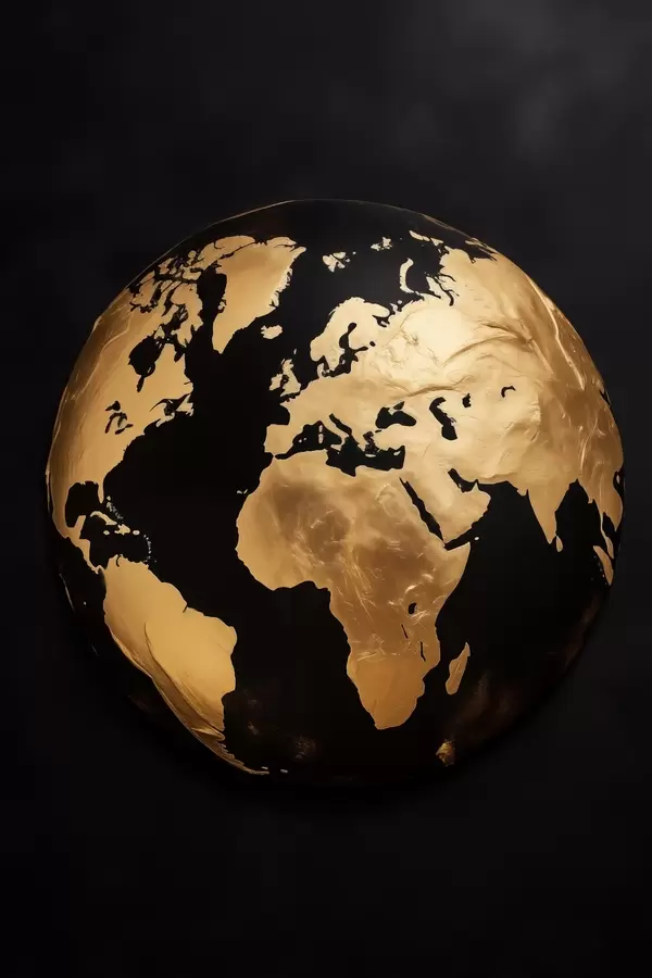 Poster Gelber strukturierter abstrakter Erdglobus, Planet auf schwarzem Hintergrund, moderne minimalistische Kunst f45942