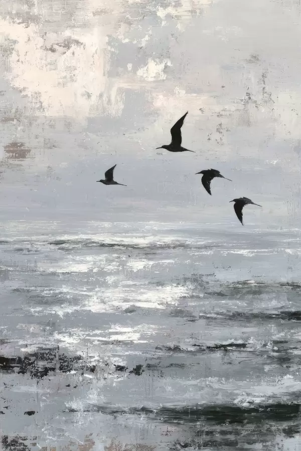 Poster Abstrakte Landschaft mit Vögeln Nr f46004