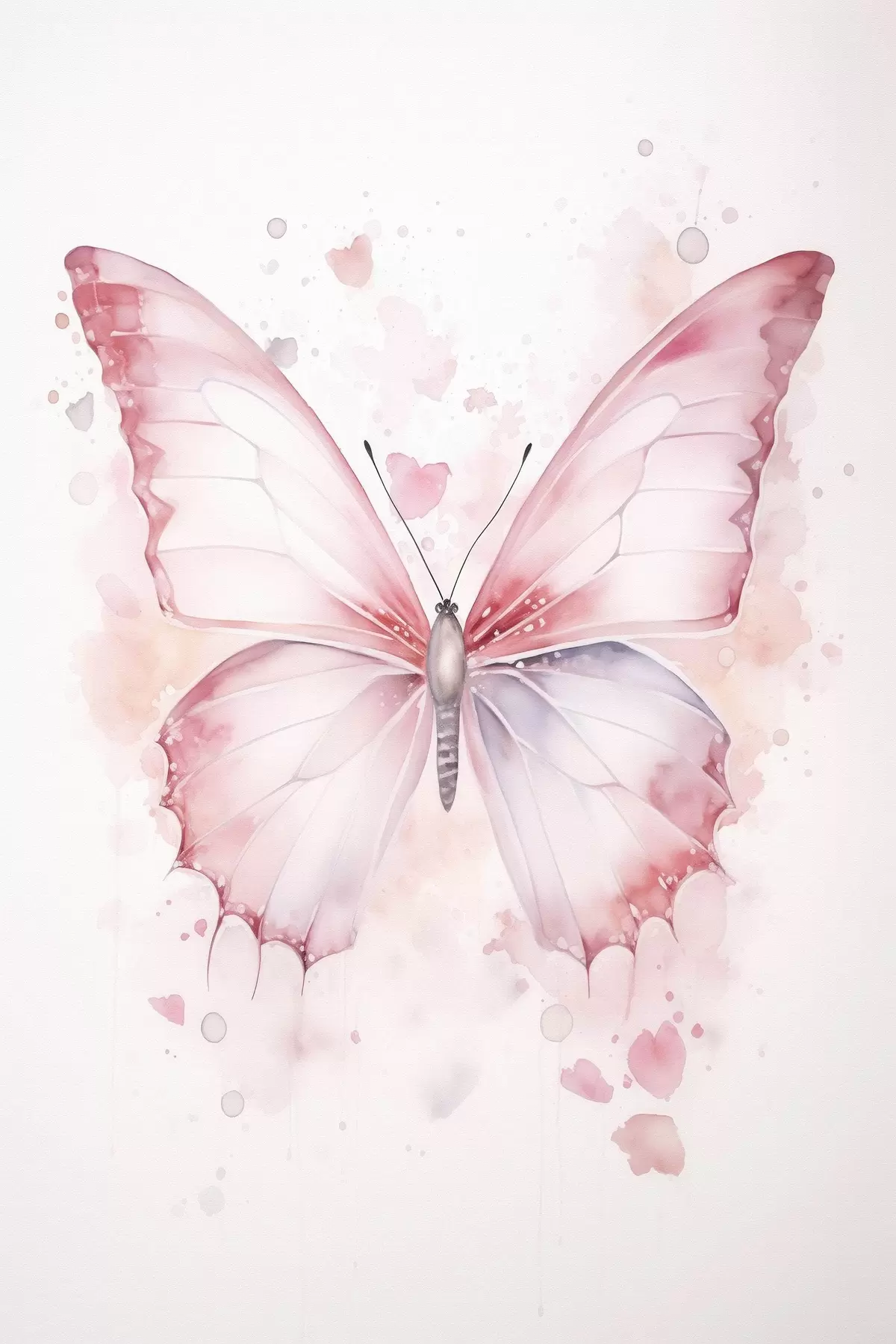 Poster Rosa Schmetterling, Aquarelltechnik f46073
