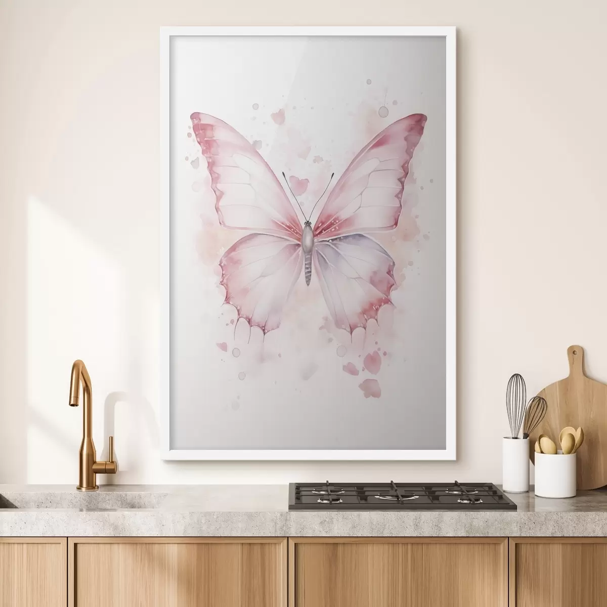 Poster Rosa Schmetterling, Aquarelltechnik Nr f46073