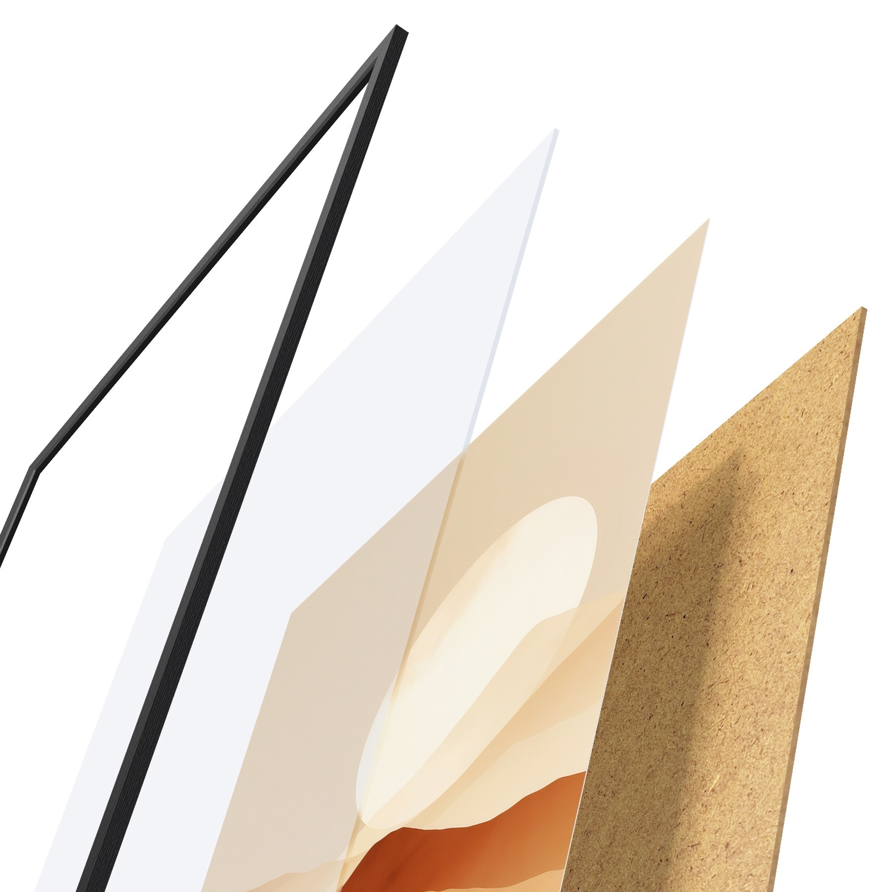Das Poster besteht aus einem Rahmen, Plexiglas, einem gedruckten Bild und einer Rückwand aus Spanplatten. Dank der Halterungen auf der Rückseite kann das Poster sofort an die Wand gehängt werden.