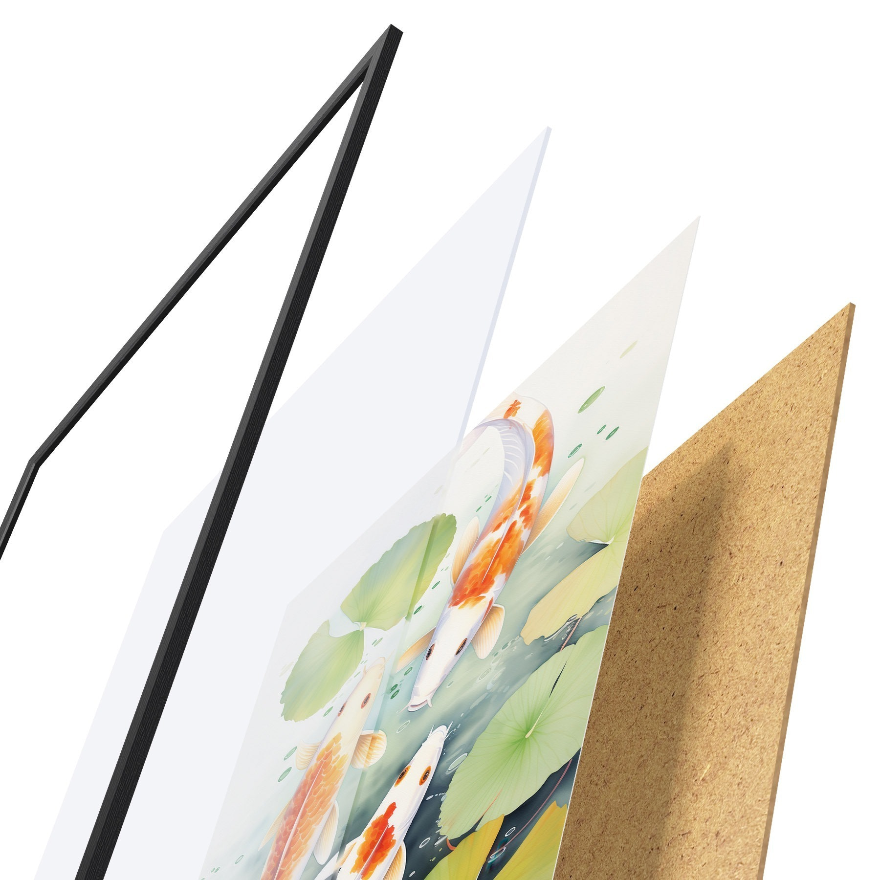 Das Poster besteht aus einem Rahmen, Plexiglas, einem gedruckten Bild und einer Rückwand aus Spanplatten. Dank der Halterungen auf der Rückseite kann das Poster sofort an die Wand gehängt werden.