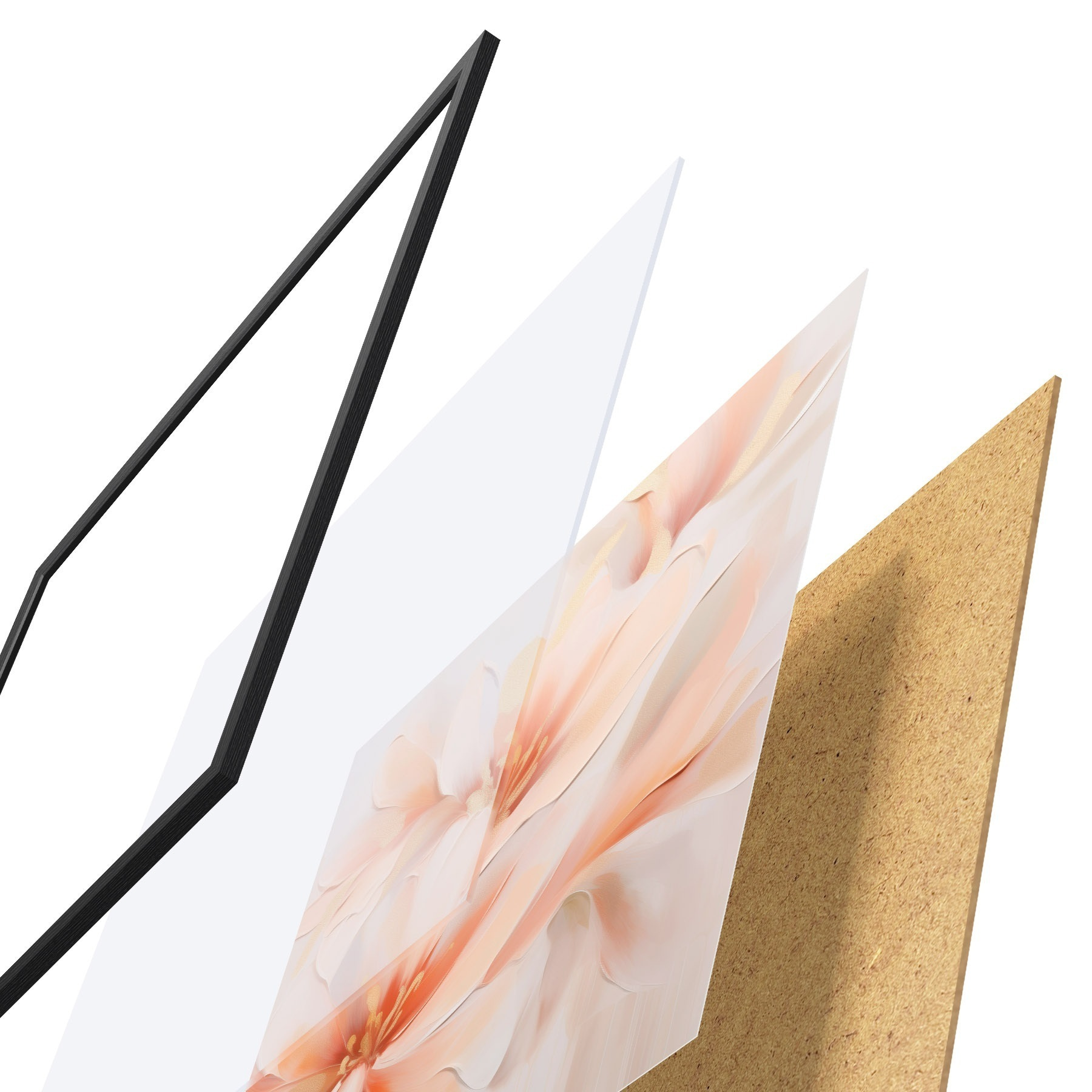Das Poster besteht aus einem Rahmen, Plexiglas, einem gedruckten Bild und einer Rückwand aus Spanplatten. Dank der Halterungen auf der Rückseite kann das Poster sofort an die Wand gehängt werden.
