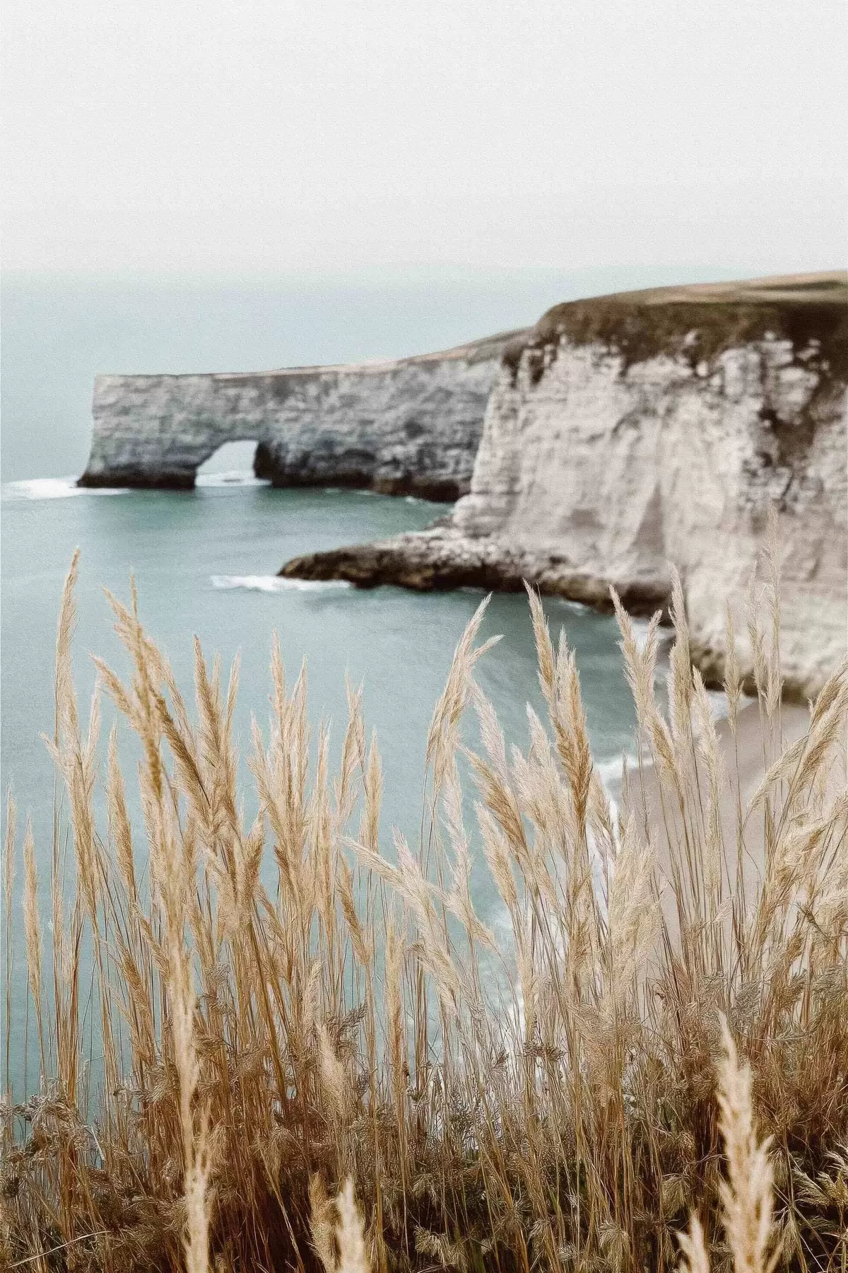 Poster Küstenklippen mit Schilf im Vordergrund Nr f46141