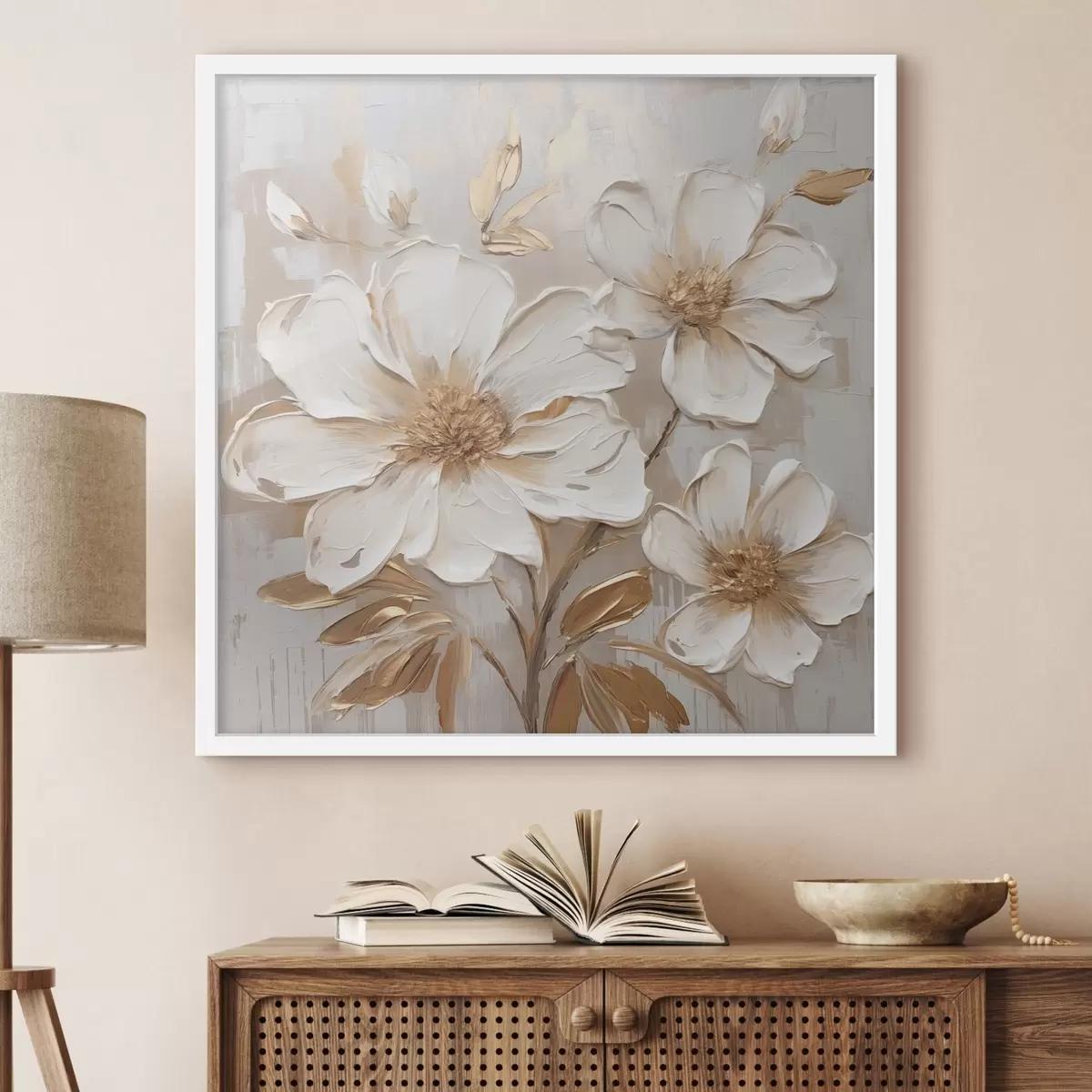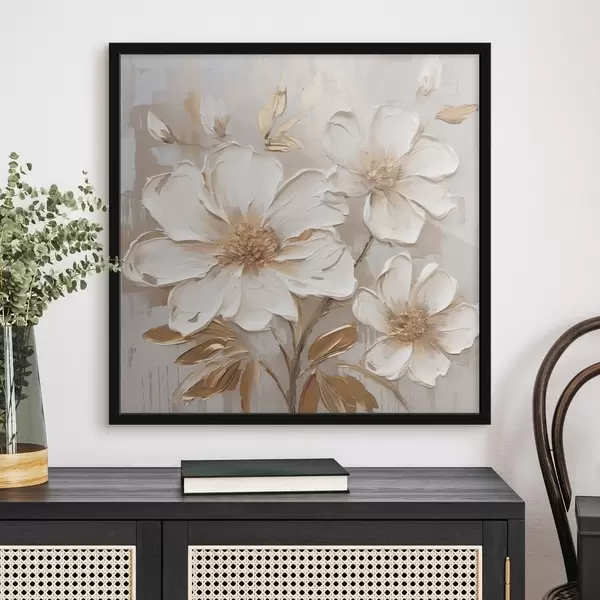 Poster Strukturierte Blumen auf hellem Hintergrund mit warmen Farbtönen f46166