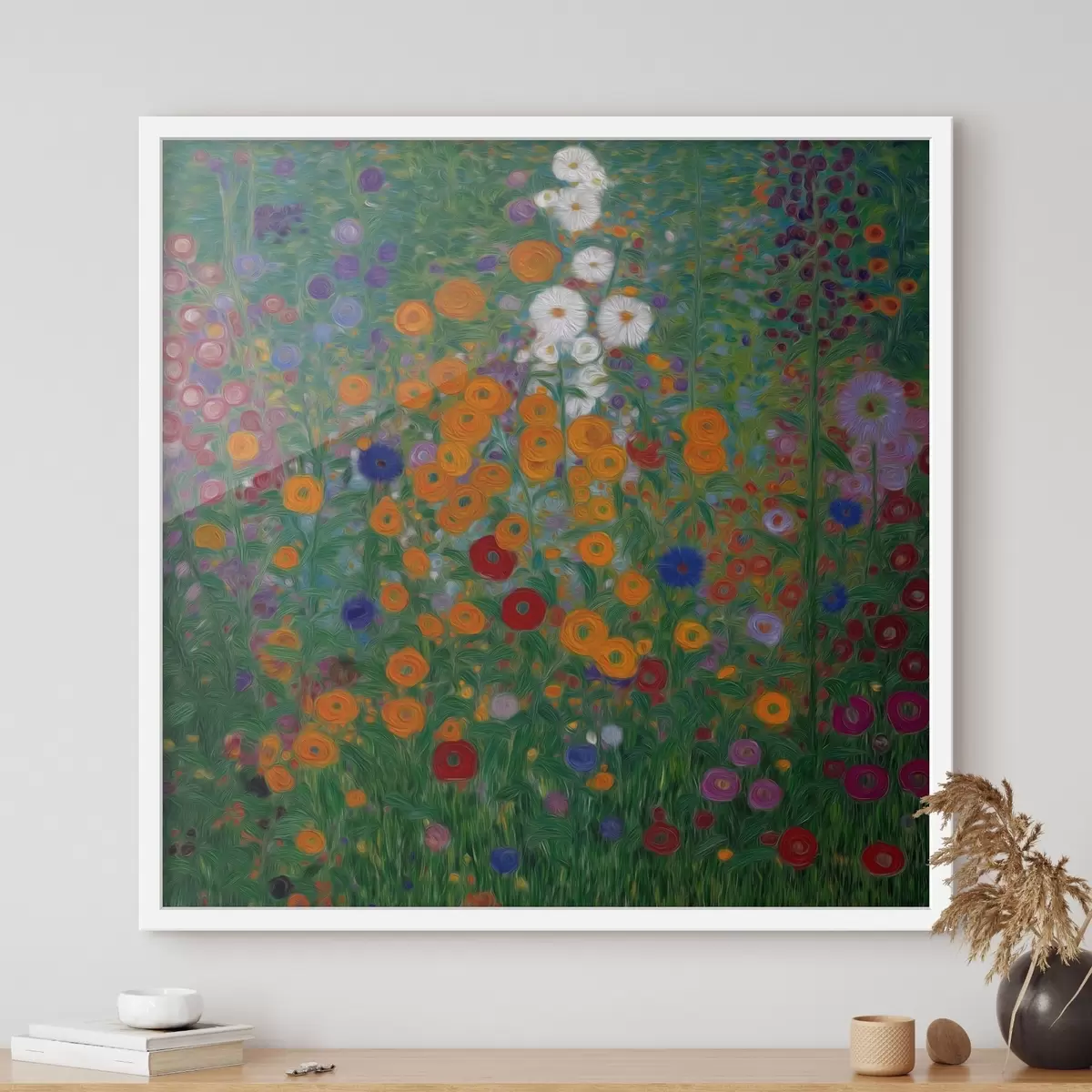 Poster Farbenfrohes Blumenfeld mit weißen Akzenten Nr f46172