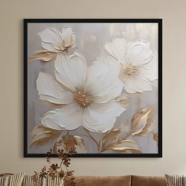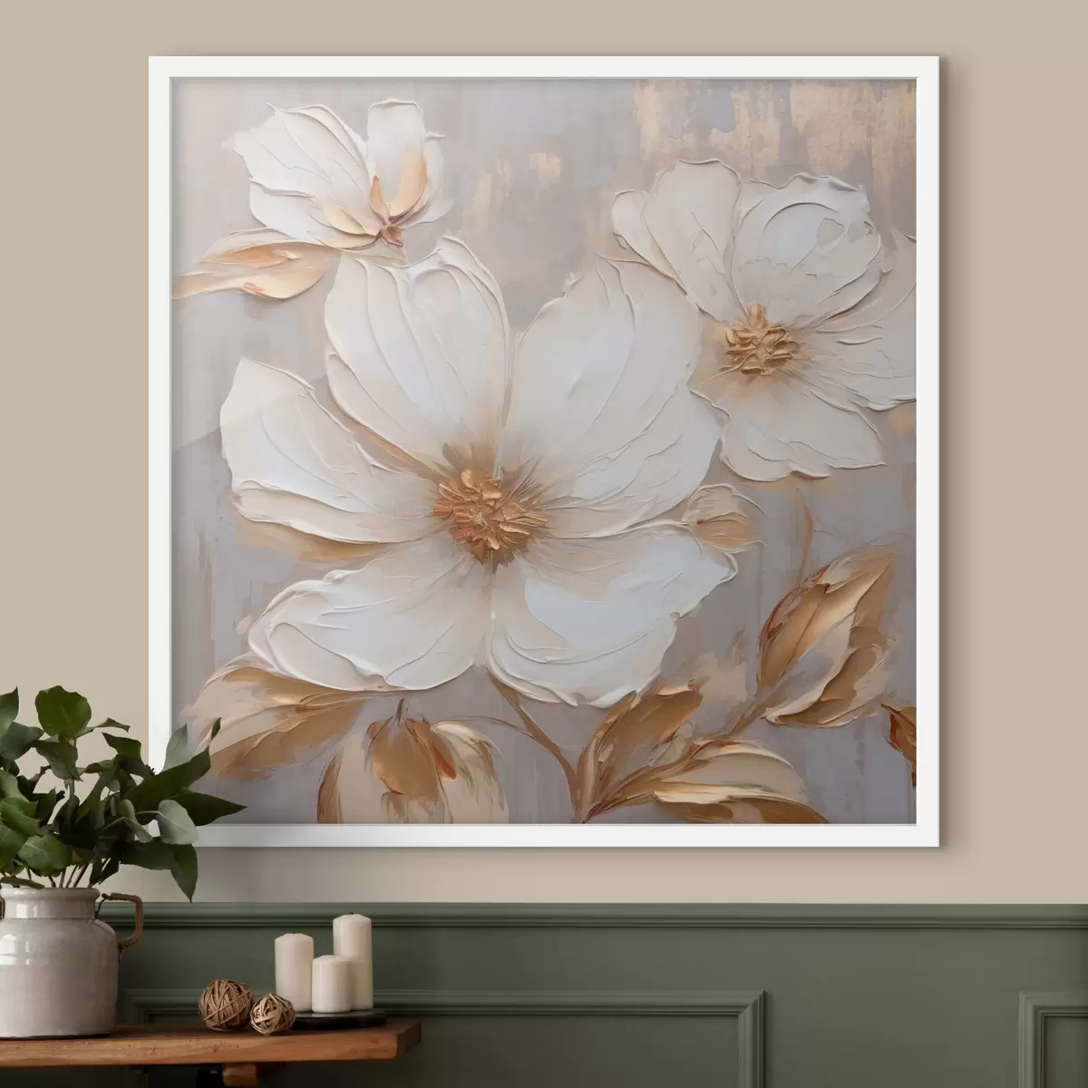 Poster Große strukturierte Blumen mit Pinselstrichen in warmen Farben Nr f46176