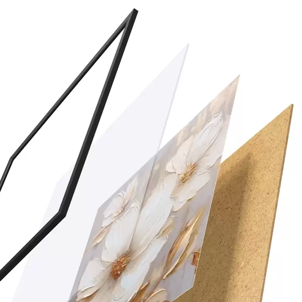 Das Poster besteht aus einem Rahmen, Plexiglas, einem gedruckten Bild und einer Rückwand aus Spanplatten. Dank der Halterungen auf der Rückseite kann das Poster sofort an die Wand gehängt werden.