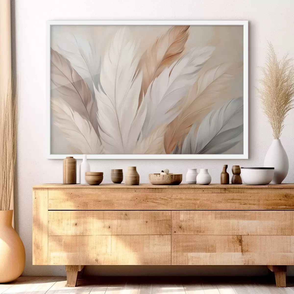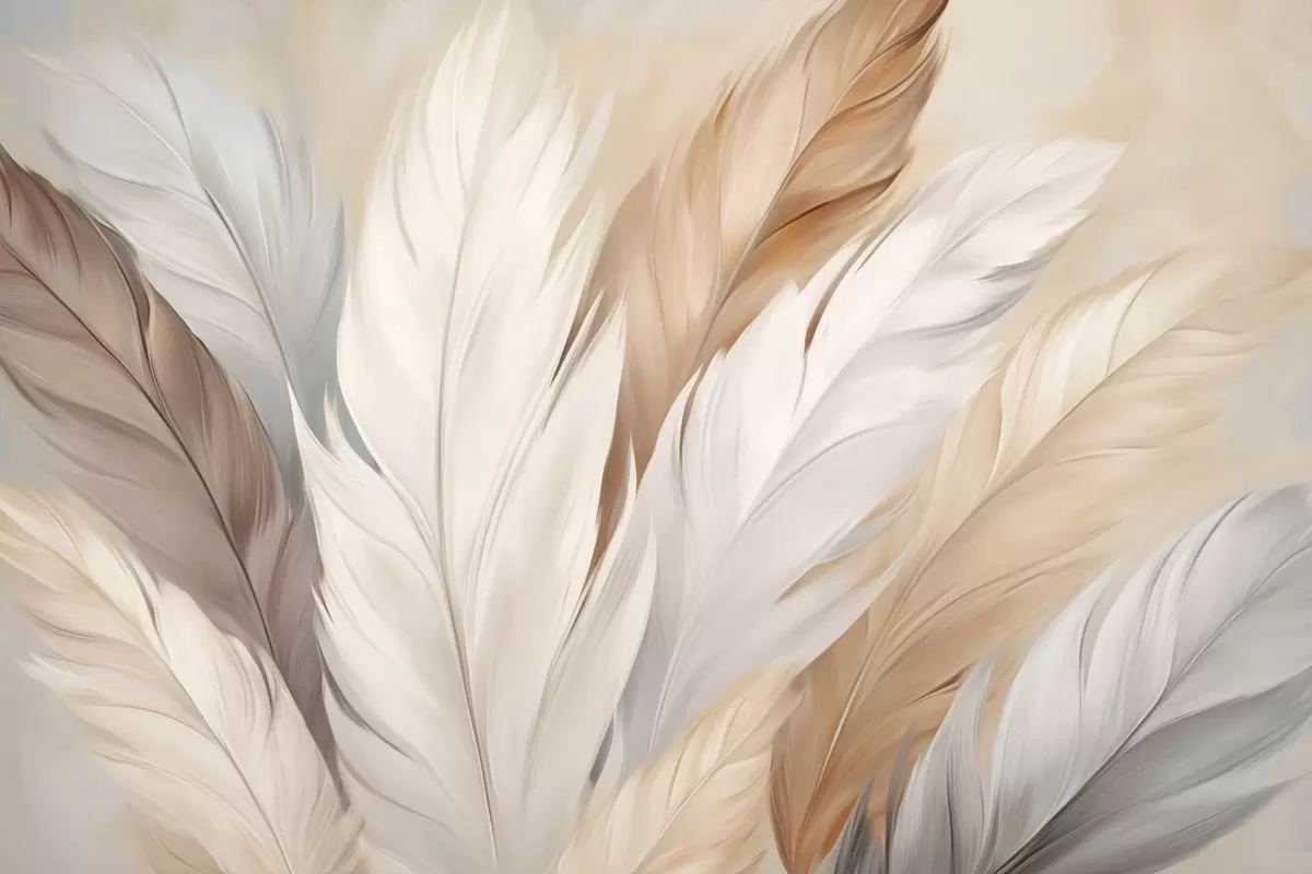 Poster Weiche Federn in Beige- und Grautönen Nr f46190