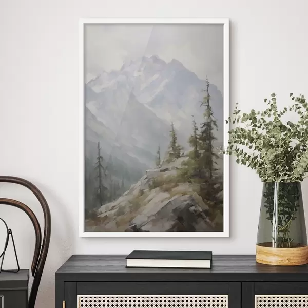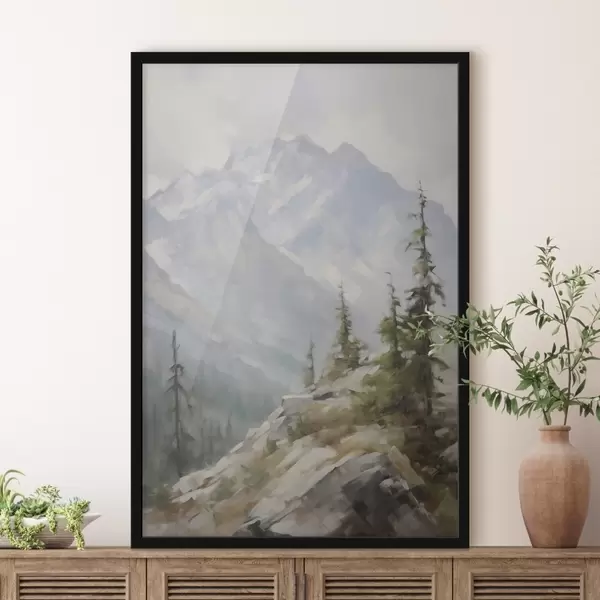 Poster Fichten vor dem Hintergrund der Berge Nr f46202