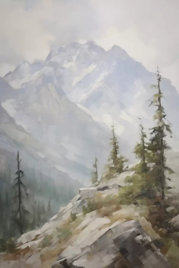 Poster Fichten vor dem Hintergrund der Berge Nr f46202