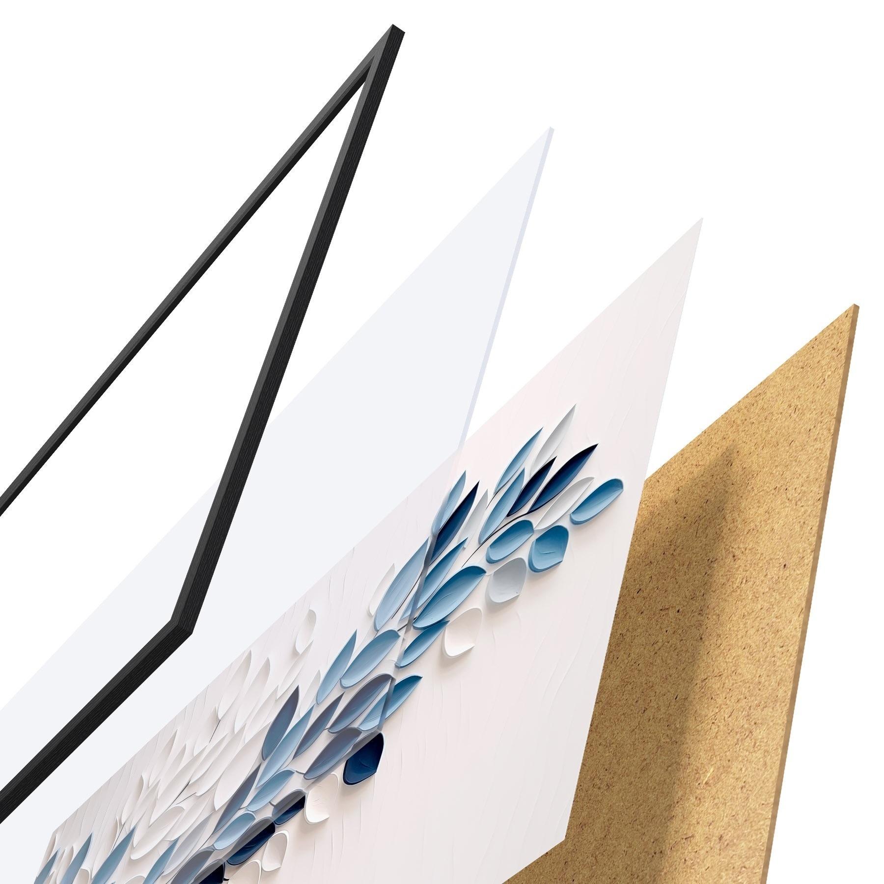 Das Poster besteht aus einem Rahmen, Plexiglas, einem gedruckten Bild und einer Rückwand aus Spanplatten. Dank der Halterungen auf der Rückseite kann das Poster sofort an die Wand gehängt werden.