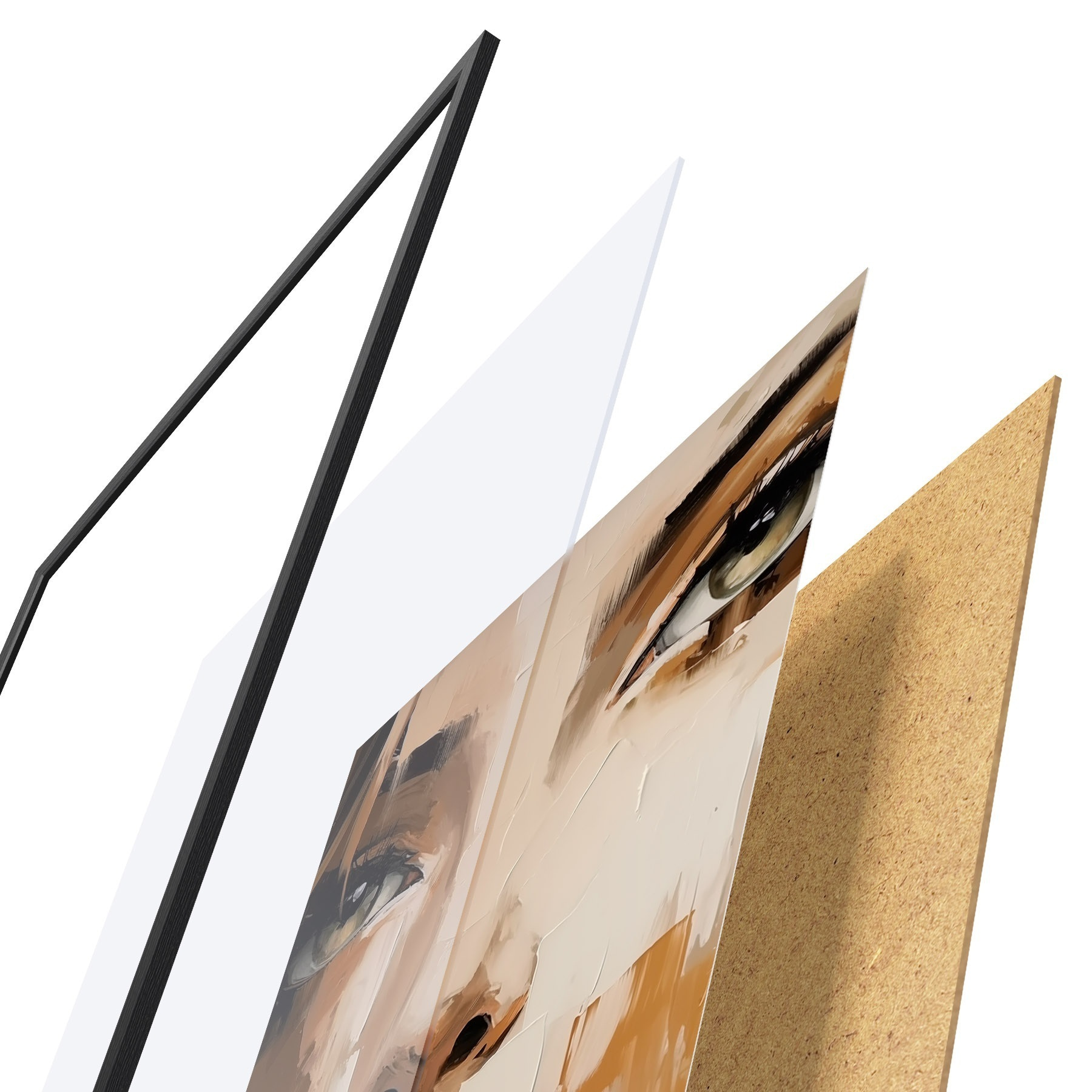 Das Poster besteht aus einem Rahmen, Plexiglas, einem gedruckten Bild und einer Rückwand aus Spanplatten. Dank der Halterungen auf der Rückseite kann das Poster sofort an die Wand gehängt werden.