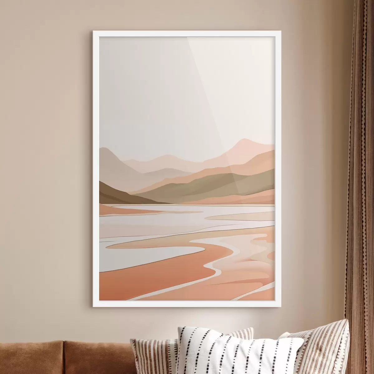 Poster Abstrakte Landschaft mit Bergen und Fluss Nr f46249