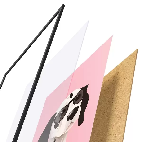 Das Poster besteht aus einem Rahmen, Plexiglas, einem gedruckten Bild und einer Rückwand aus Spanplatten. Dank der Halterungen auf der Rückseite kann das Poster sofort an die Wand gehängt werden.