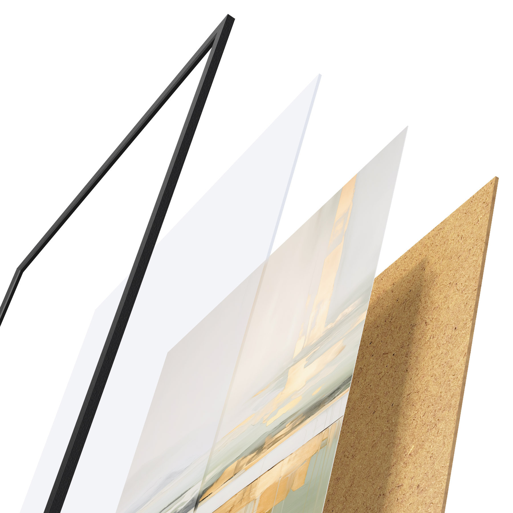 Das Poster besteht aus einem Rahmen, Plexiglas, einem gedruckten Bild und einer Rückwand aus Spanplatten. Dank der Halterungen auf der Rückseite kann das Poster sofort an die Wand gehängt werden.