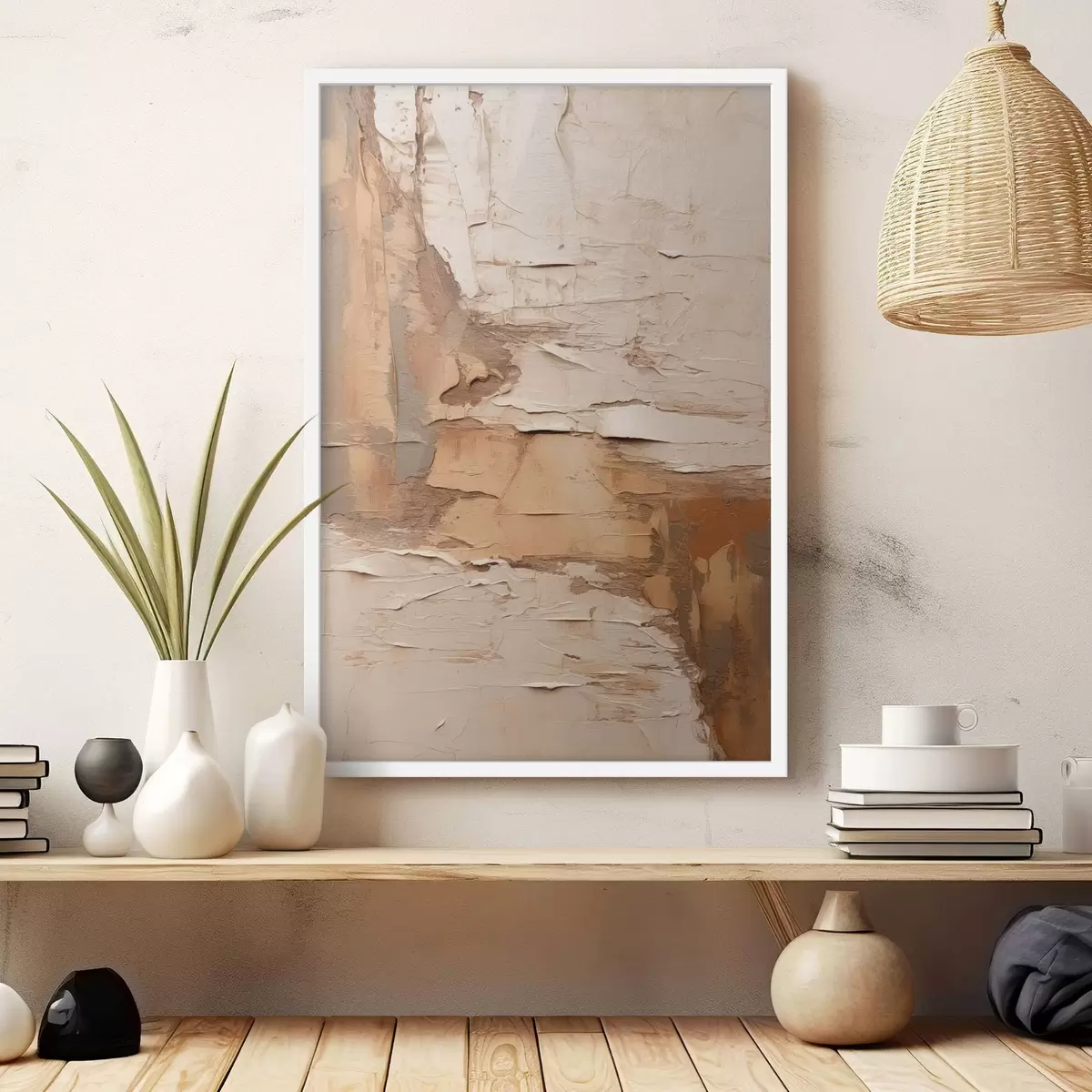 Poster Abstrakte Malerei mit dicken Pinselstrichen, Beige- und Brauntönen, strukturierter Oberfläche und neutraler Farbpalette Nr f46273