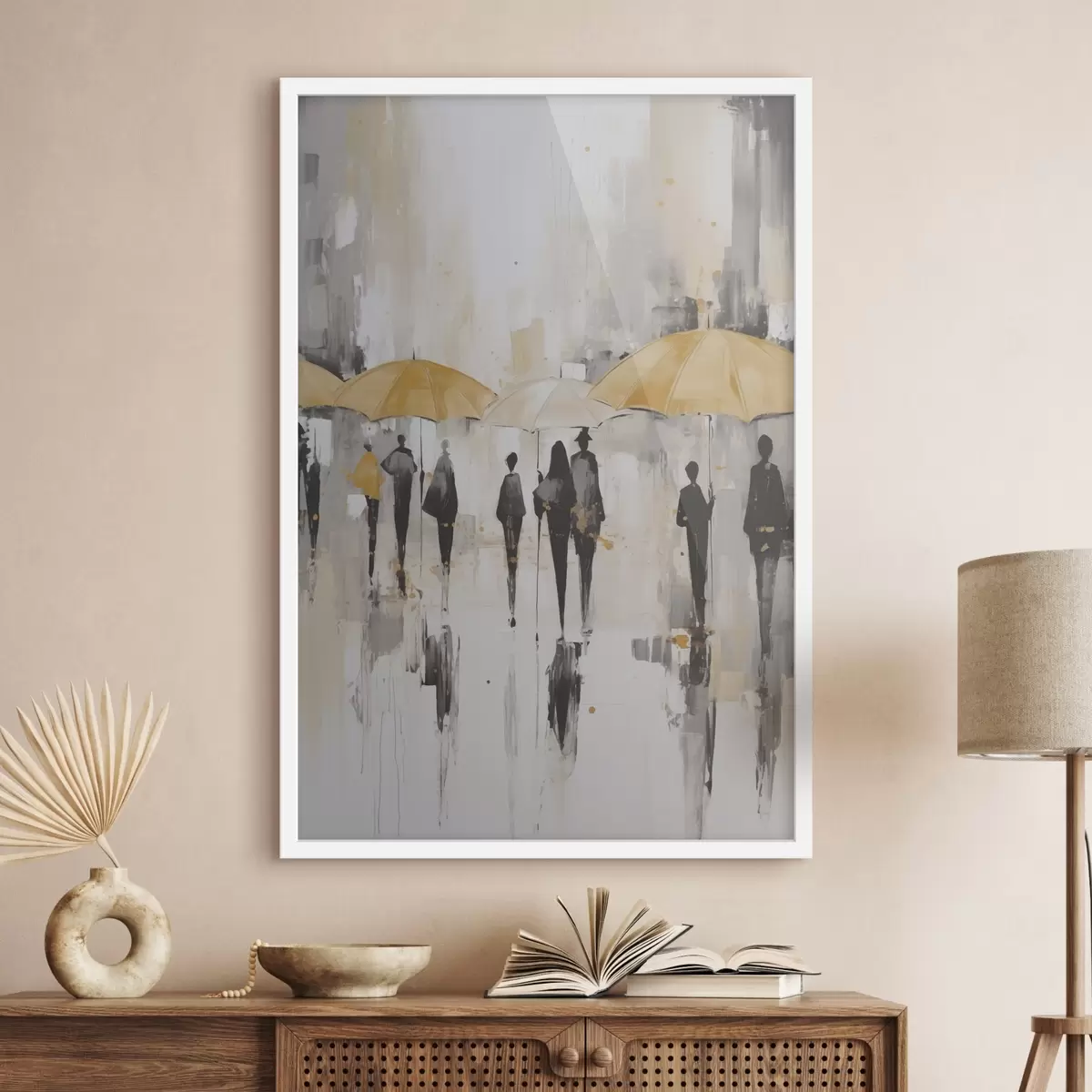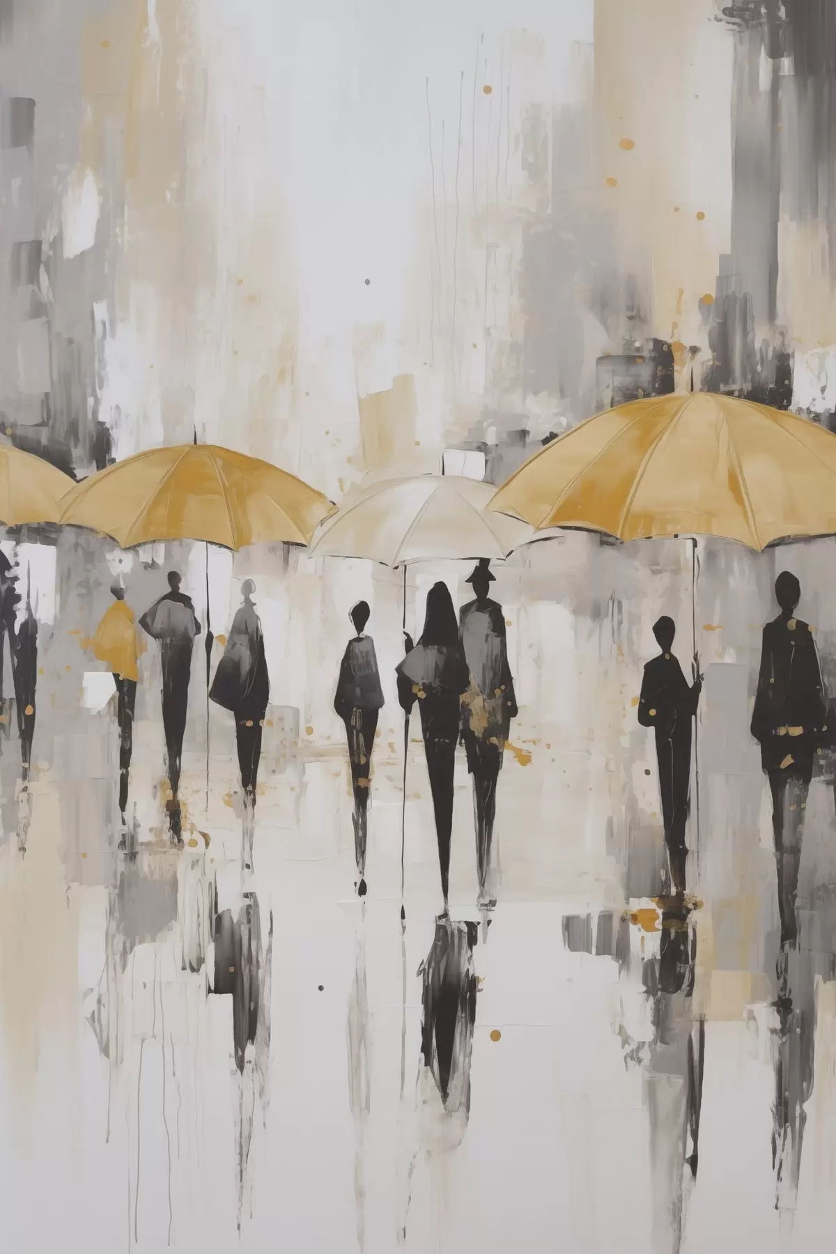 Poster Abstraktion von Menschen mit Regenschirmen Nr f46304
