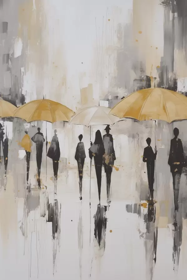 Poster Abstraktion von Menschen mit Regenschirmen Nr f46304