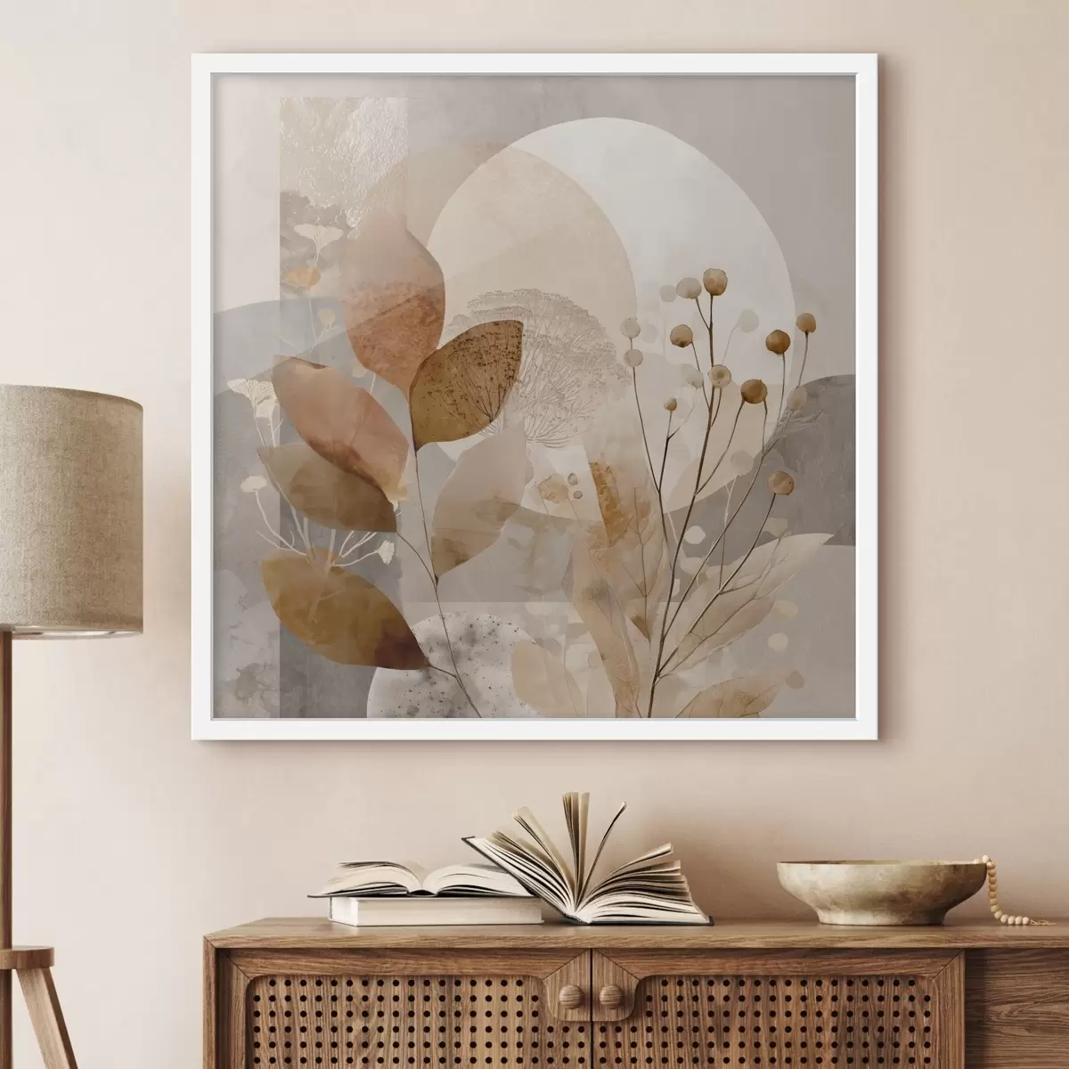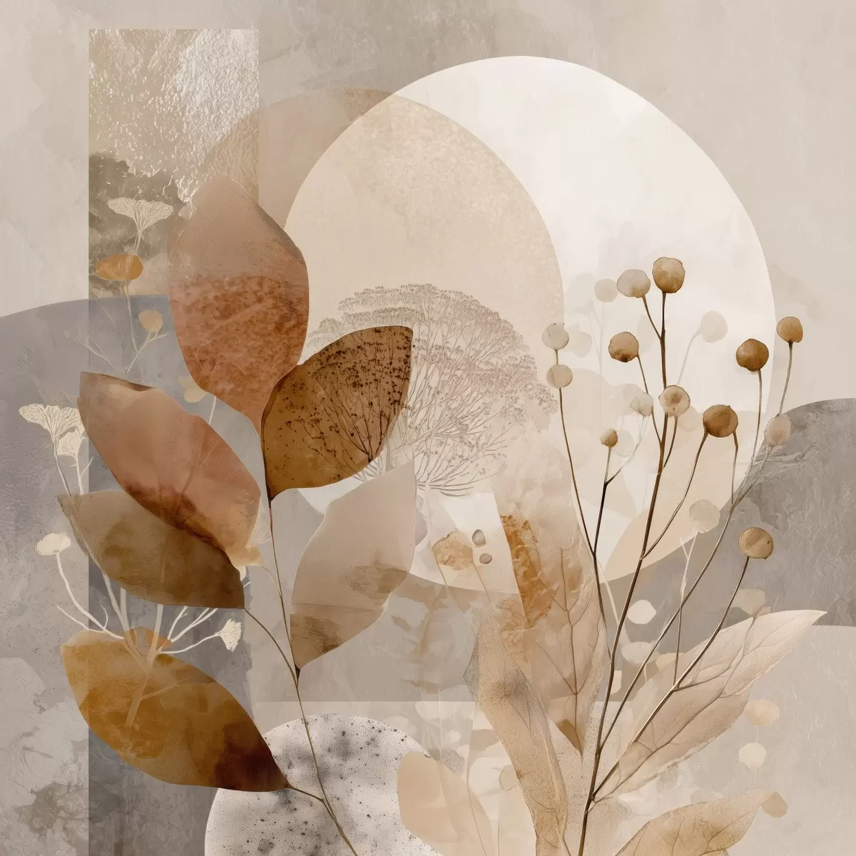 Poster Blumenmuster in Beige und Braun f46308