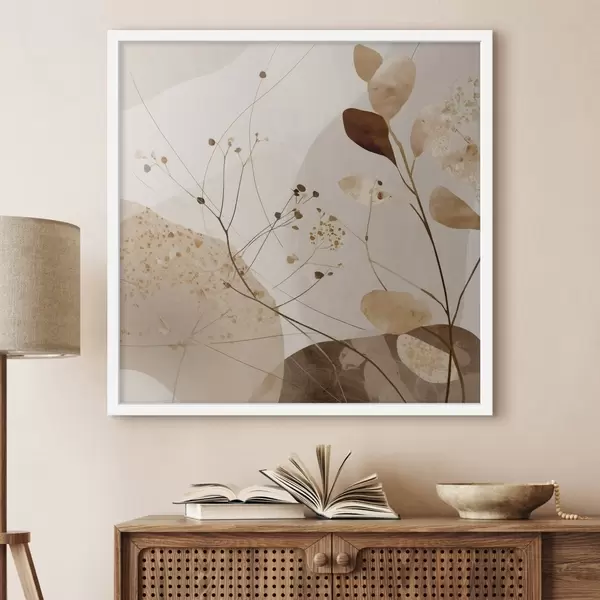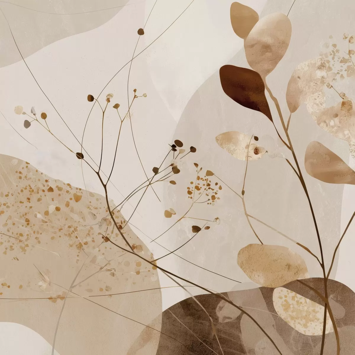 Poster Abstrakte Formen und Pflanzenmotive in Beigetönen Nr f46309