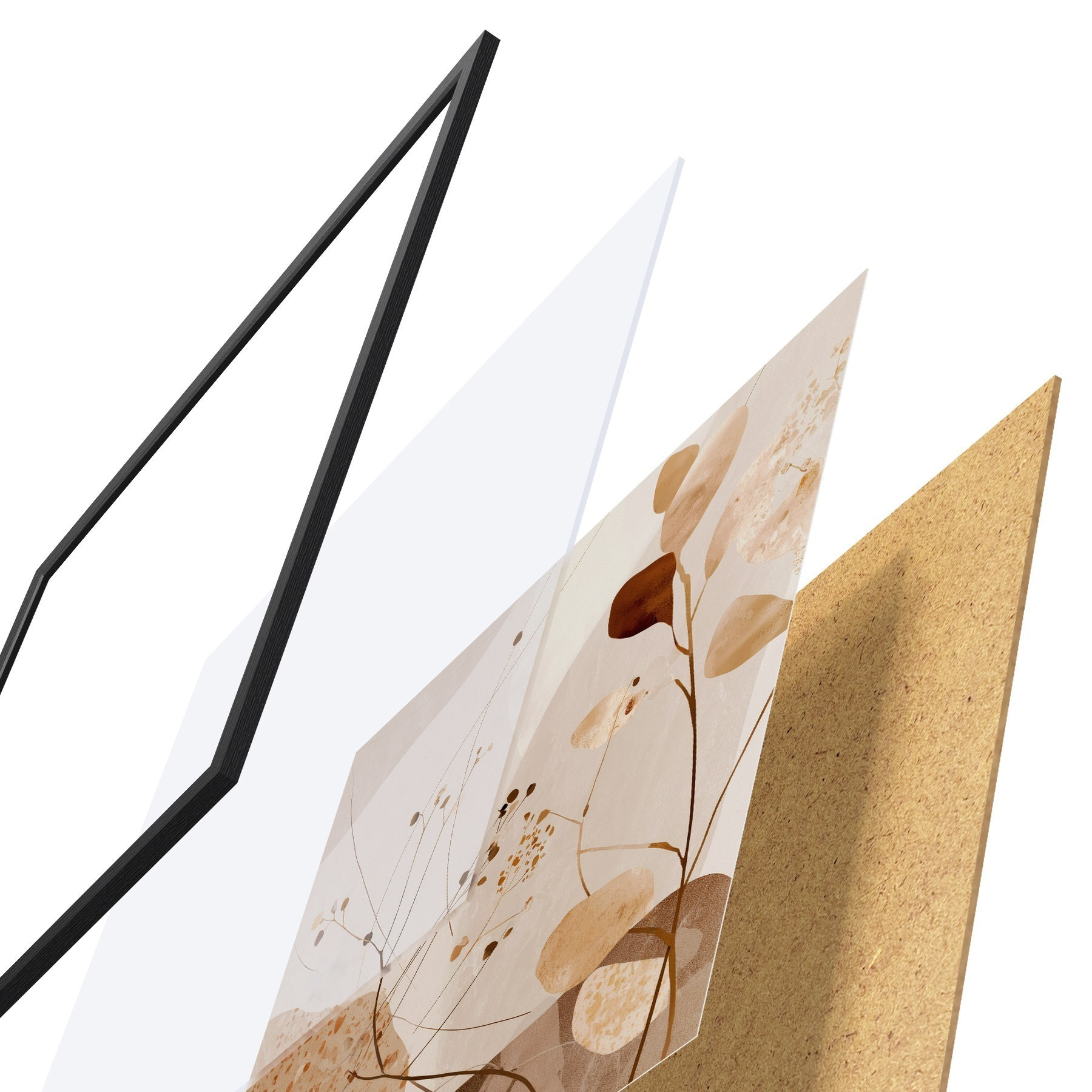 Poster Abstrakte Formen und Pflanzenmotive in Beigetönen f46309