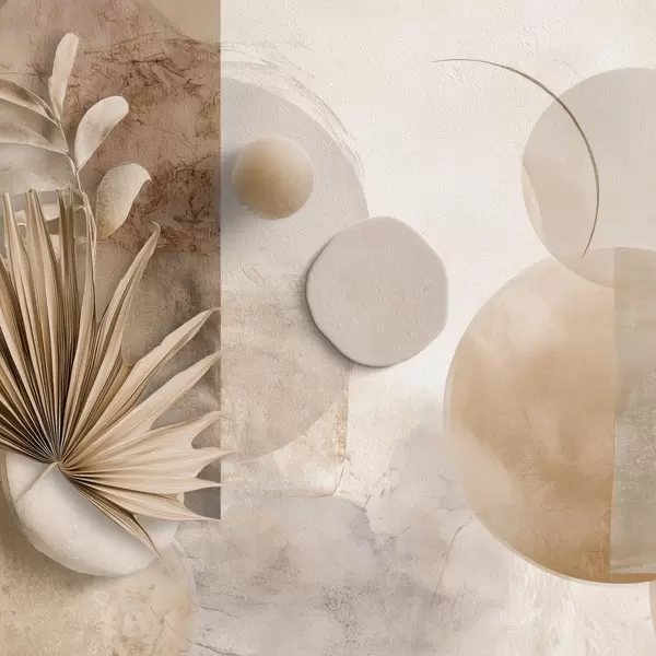 Poster Getrocknete Palmblätter und 3D-Kreise in Beigetönen Nr f46310