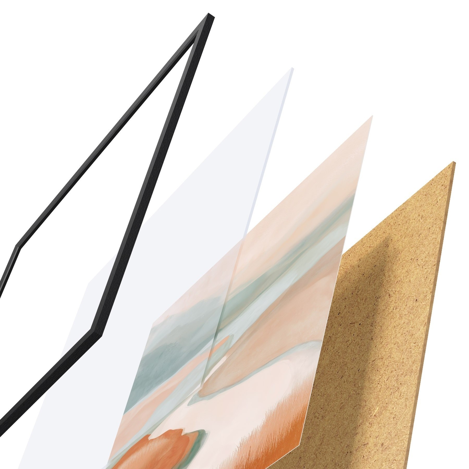 Das Poster besteht aus einem Rahmen, Plexiglas, einem gedruckten Bild und einer Rückwand aus Spanplatten. Dank der Halterungen auf der Rückseite kann das Poster sofort an die Wand gehängt werden.