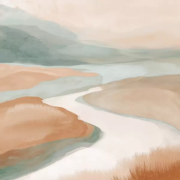 Poster Abstrakte Landschaft mit einem Fluss in Orange und Grün Nr f46316