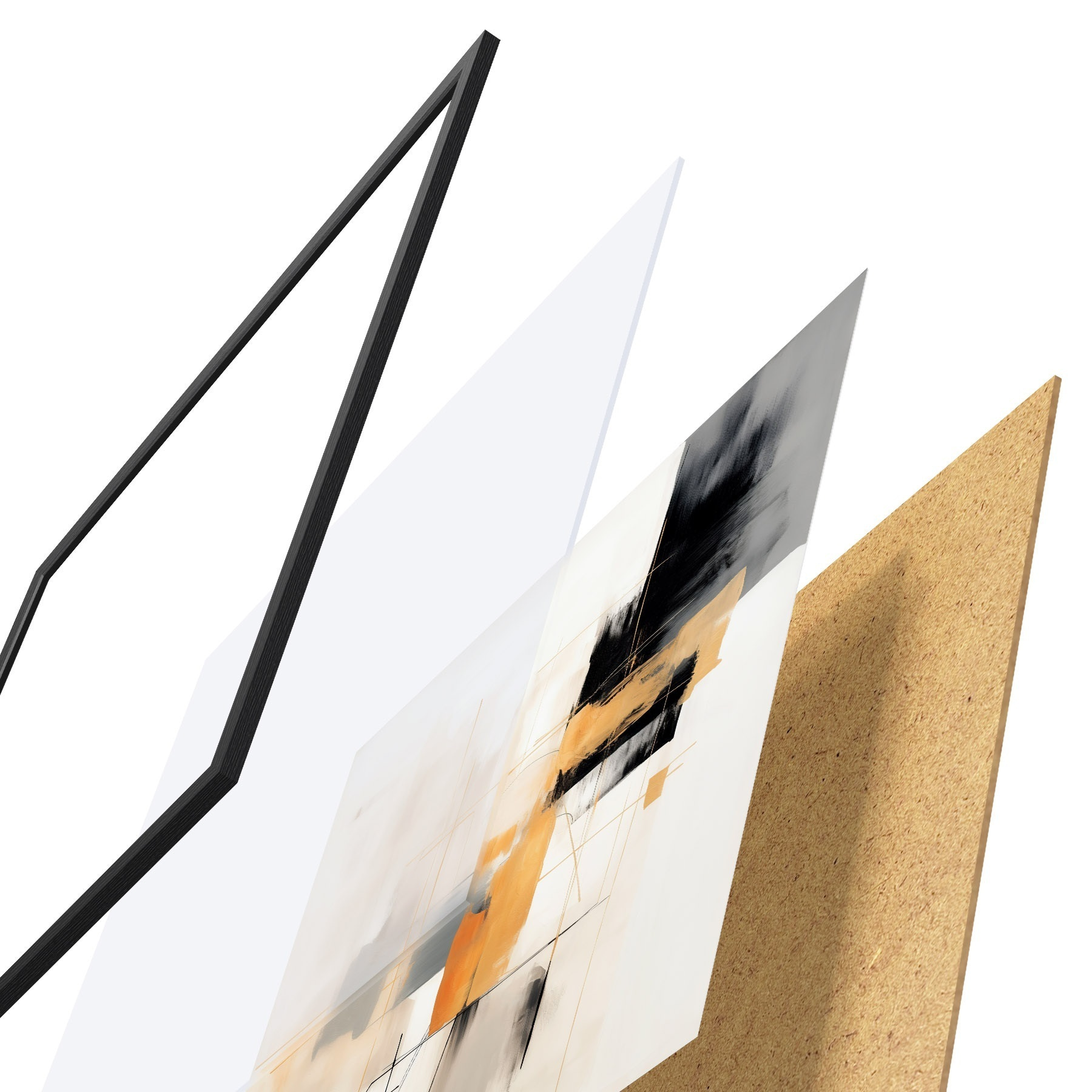 Das Poster besteht aus einem Rahmen, Plexiglas, einem gedruckten Bild und einer Rückwand aus Spanplatten. Dank der Halterungen auf der Rückseite kann das Poster sofort an die Wand gehängt werden.
