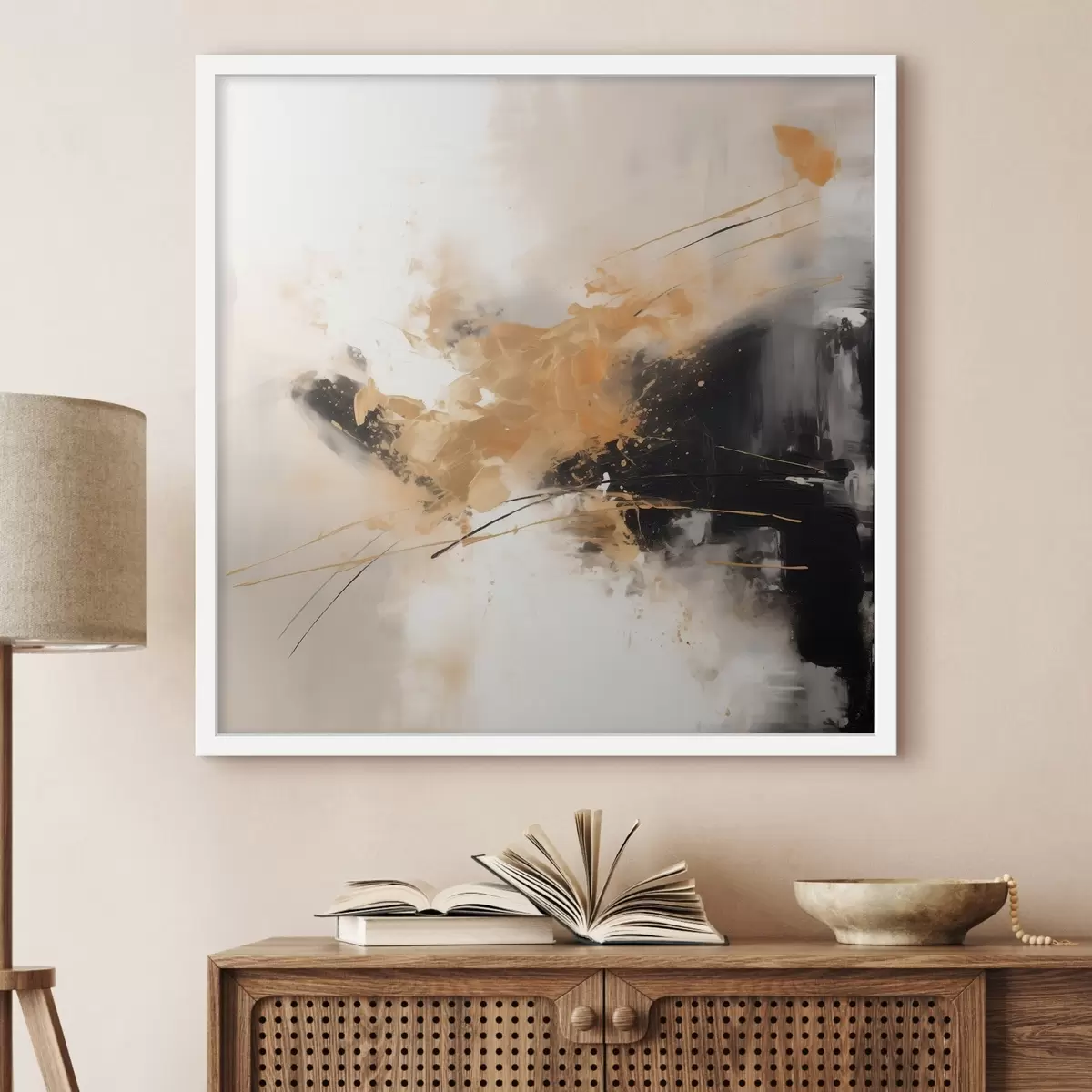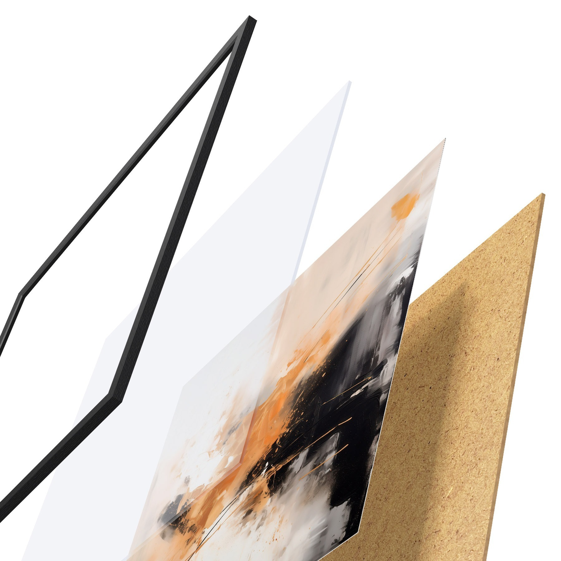 Poster Orangefarbene und schwarze Striche, moderne Abstraktion Nr f46327