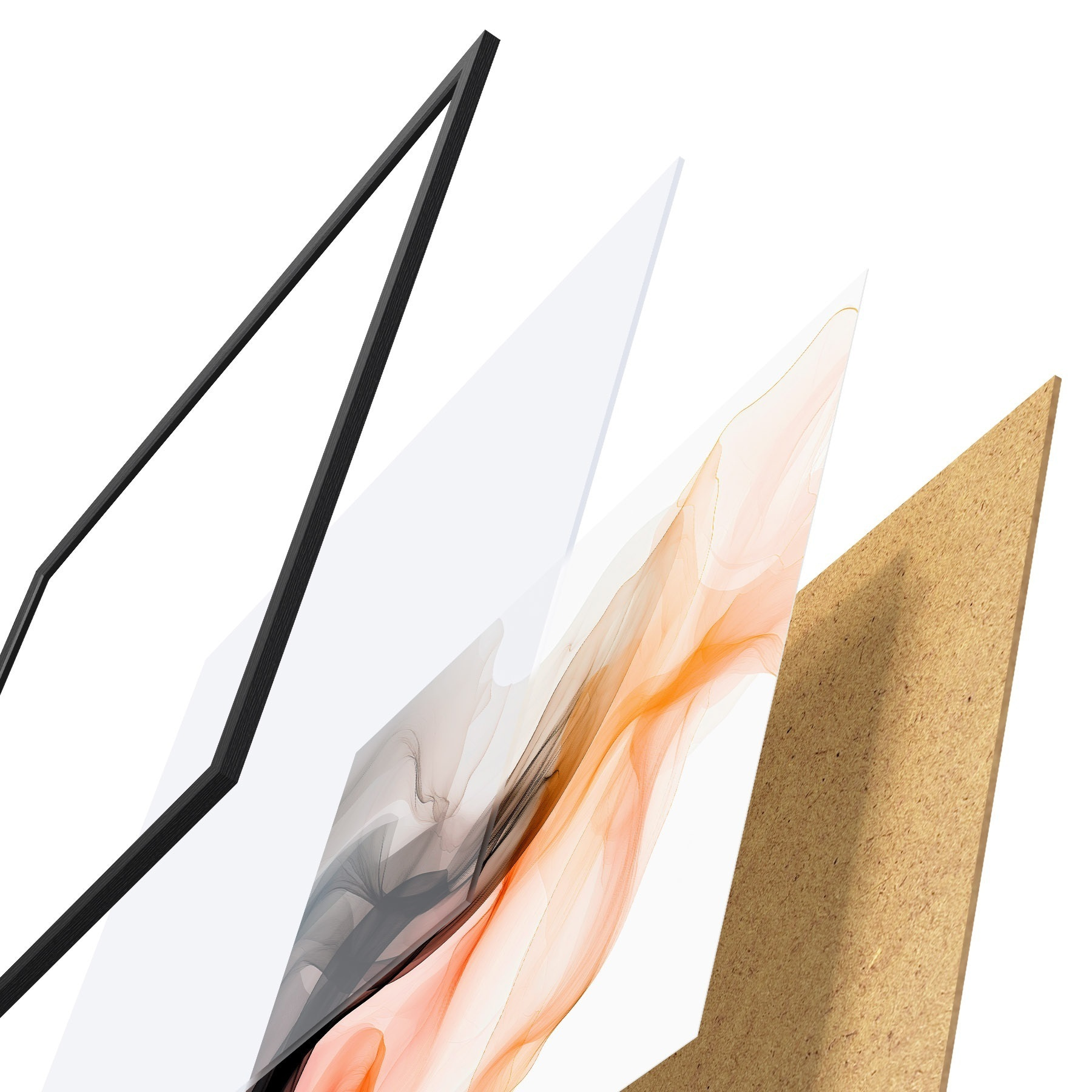 Das Poster besteht aus einem Rahmen, Plexiglas, einem gedruckten Bild und einer Rückwand aus Spanplatten. Dank der Halterungen auf der Rückseite kann das Poster sofort an die Wand gehängt werden.