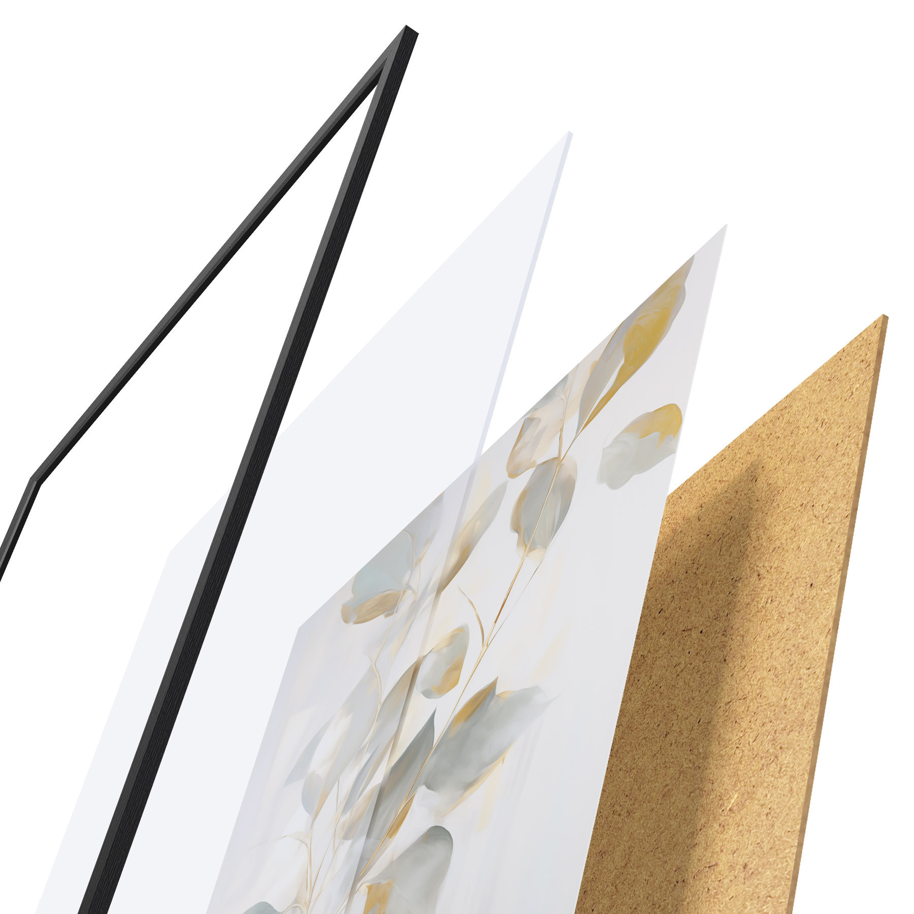Das Poster besteht aus einem Rahmen, Plexiglas, einem gedruckten Bild und einer Rückwand aus Spanplatten. Dank der Halterungen auf der Rückseite kann das Poster sofort an die Wand gehängt werden.