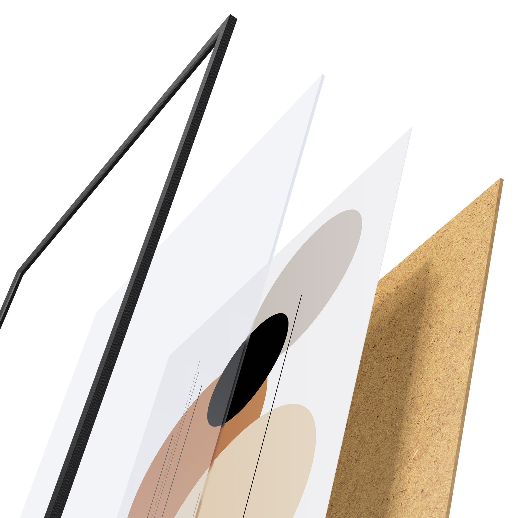 Das Poster besteht aus einem Rahmen, Plexiglas, einem gedruckten Bild und einer Rückwand aus Spanplatten. Dank der Halterungen auf der Rückseite kann das Poster sofort an die Wand gehängt werden.