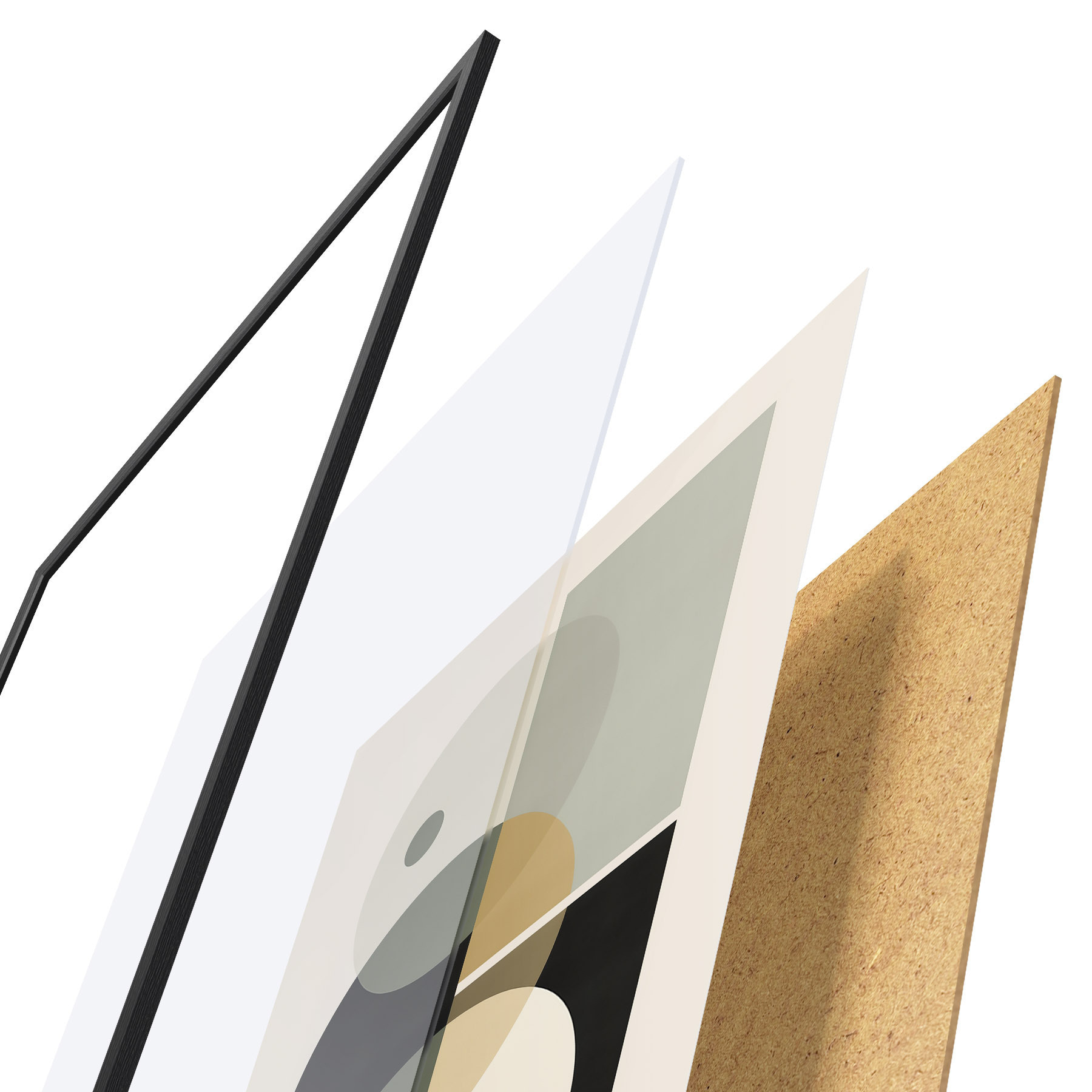 Das Poster besteht aus einem Rahmen, Plexiglas, einem gedruckten Bild und einer Rückwand aus Spanplatten. Dank der Halterungen auf der Rückseite kann das Poster sofort an die Wand gehängt werden.
