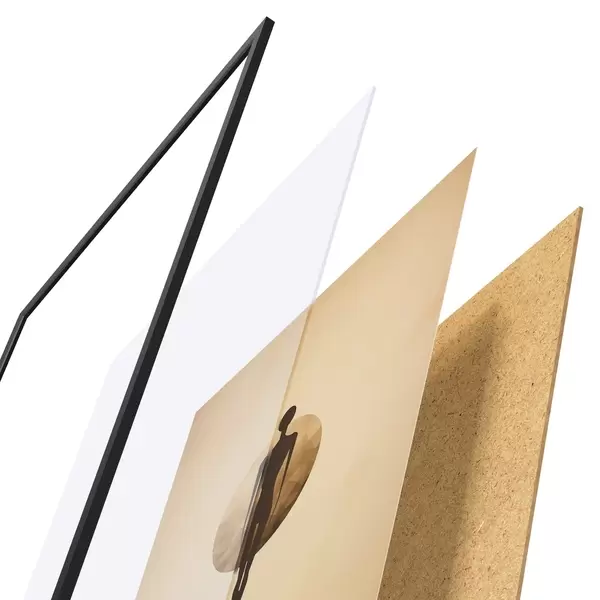 Das Poster besteht aus einem Rahmen, Plexiglas, einem gedruckten Bild und einer Rückwand aus Spanplatten. Dank der Halterungen auf der Rückseite kann das Poster sofort an die Wand gehängt werden.