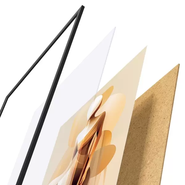 Das Poster besteht aus einem Rahmen, Plexiglas, einem gedruckten Bild und einer Rückwand aus Spanplatten. Dank der Halterungen auf der Rückseite kann das Poster sofort an die Wand gehängt werden.