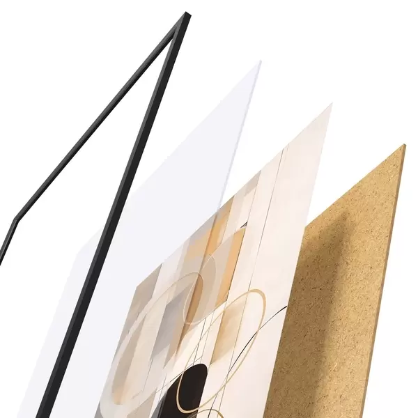 Das Poster besteht aus einem Rahmen, Plexiglas, einem gedruckten Bild und einer Rückwand aus Spanplatten. Dank der Halterungen auf der Rückseite kann das Poster sofort an die Wand gehängt werden.
