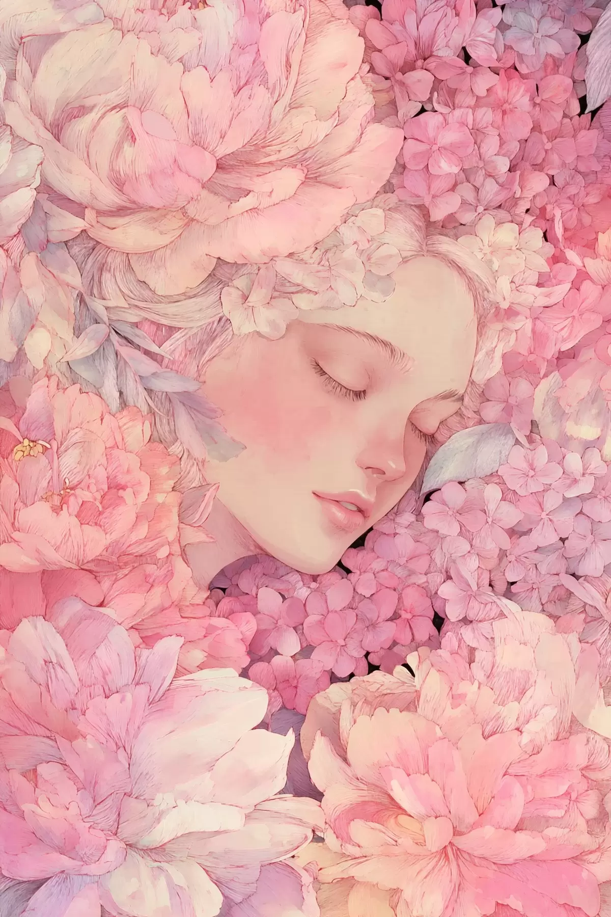 Poster Gesichter mit Pfingstrosen Nr f46363
