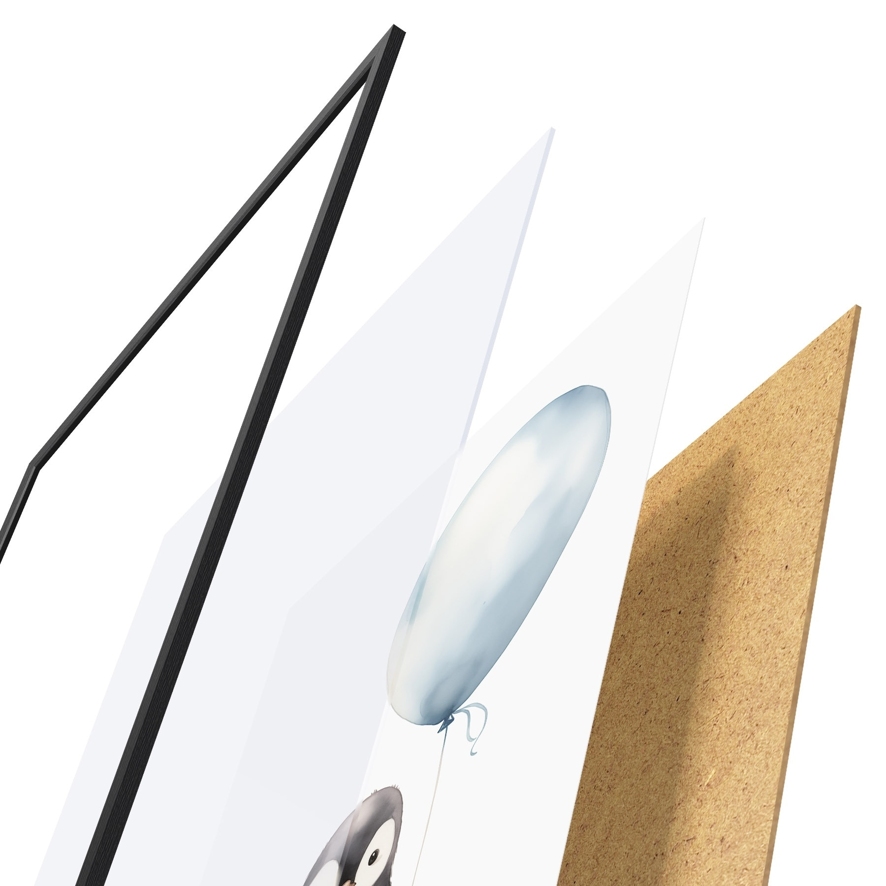 Das Poster besteht aus einem Rahmen, Plexiglas, einem gedruckten Bild und einer Rückwand aus Spanplatten. Dank der Halterungen auf der Rückseite kann das Poster sofort an die Wand gehängt werden.
