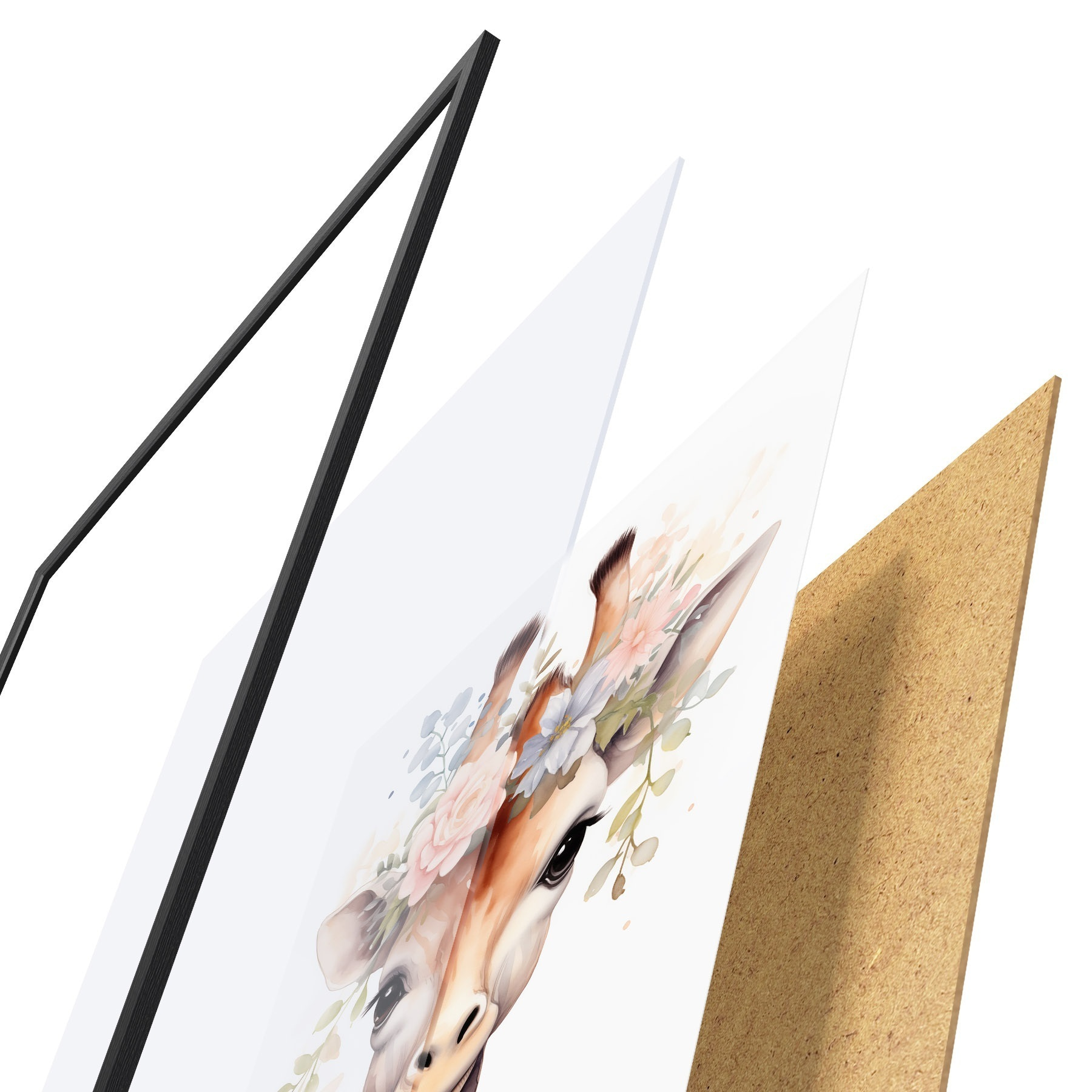Das Poster besteht aus einem Rahmen, Plexiglas, einem gedruckten Bild und einer Rückwand aus Spanplatten. Dank der Halterungen auf der Rückseite kann das Poster sofort an die Wand gehängt werden.