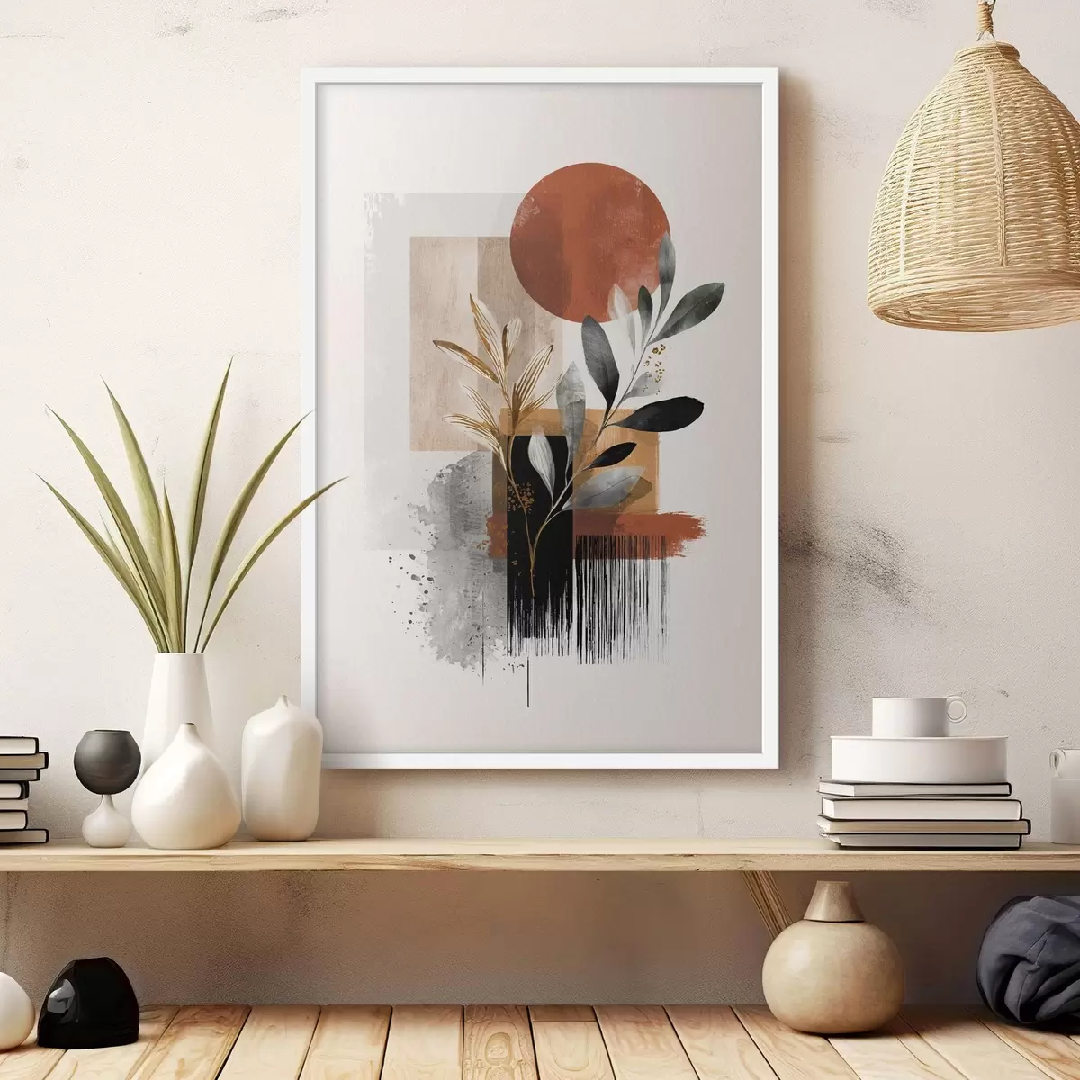 Poster Geometrie und Blätter Abstraktion f46388