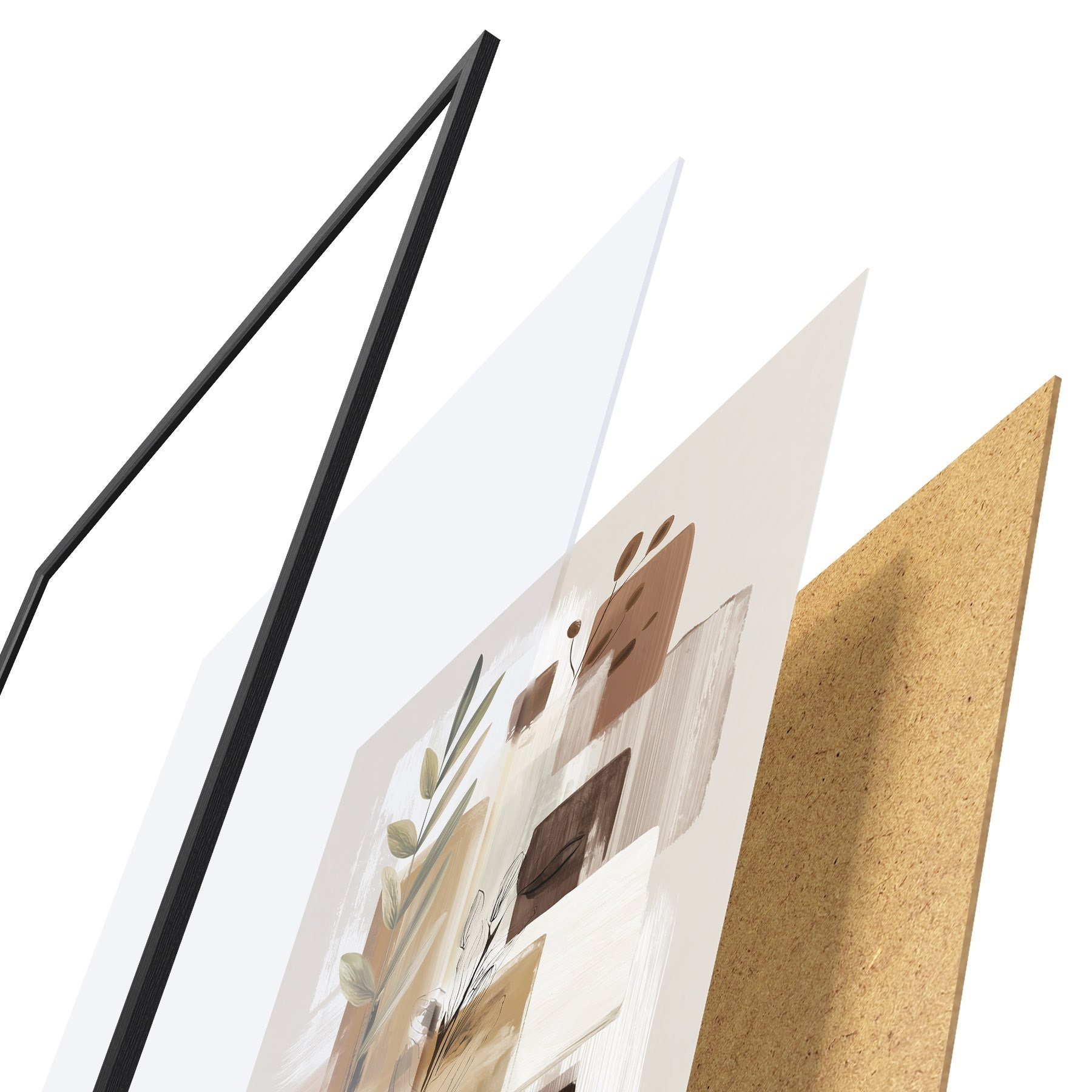 Das Poster besteht aus einem Rahmen, Plexiglas, einem gedruckten Bild und einer Rückwand aus Spanplatten. Dank der Halterungen auf der Rückseite kann das Poster sofort an die Wand gehängt werden.