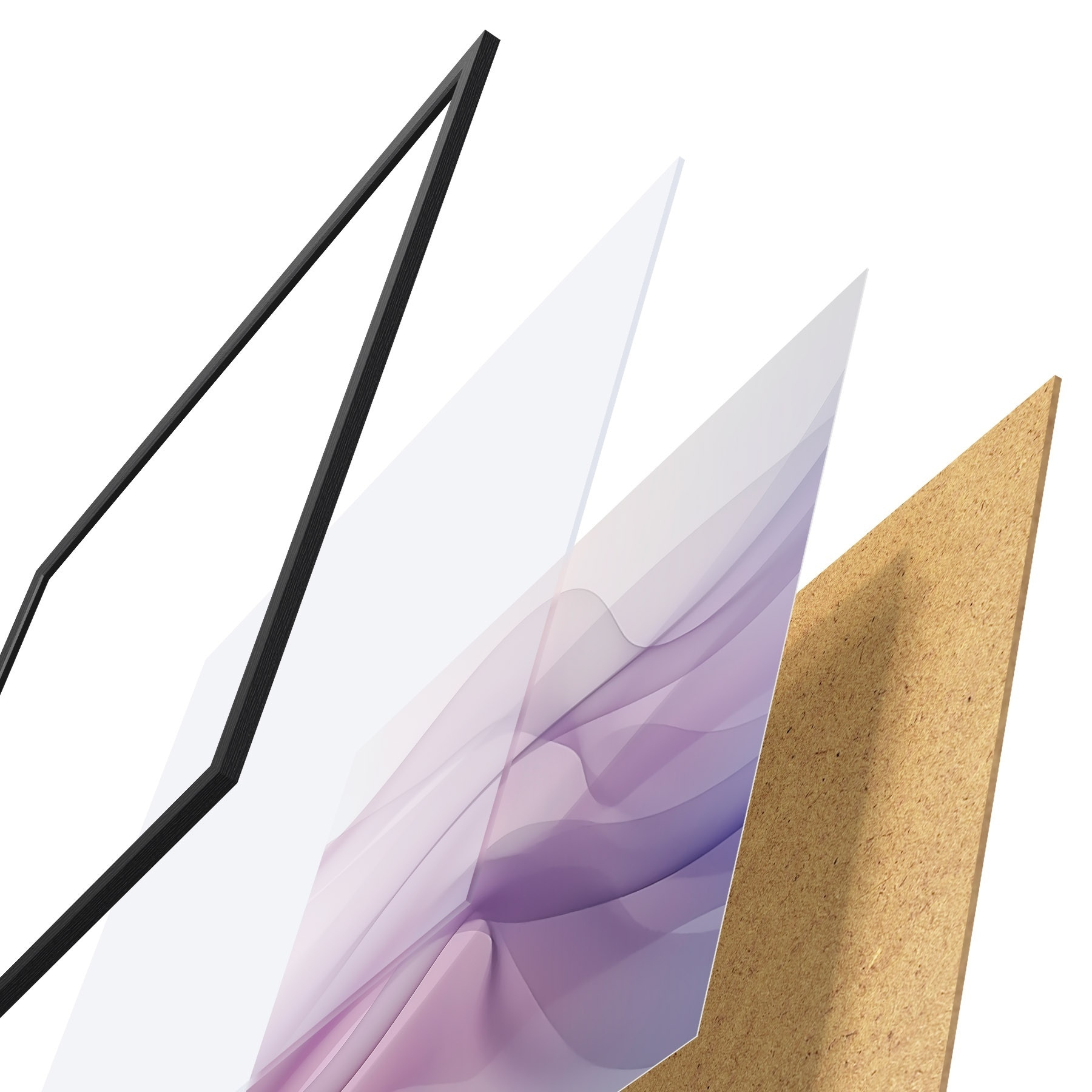 Das Poster besteht aus einem Rahmen, Plexiglas, einem gedruckten Bild und einer Rückwand aus Spanplatten. Dank der Halterungen auf der Rückseite kann das Poster sofort an die Wand gehängt werden.