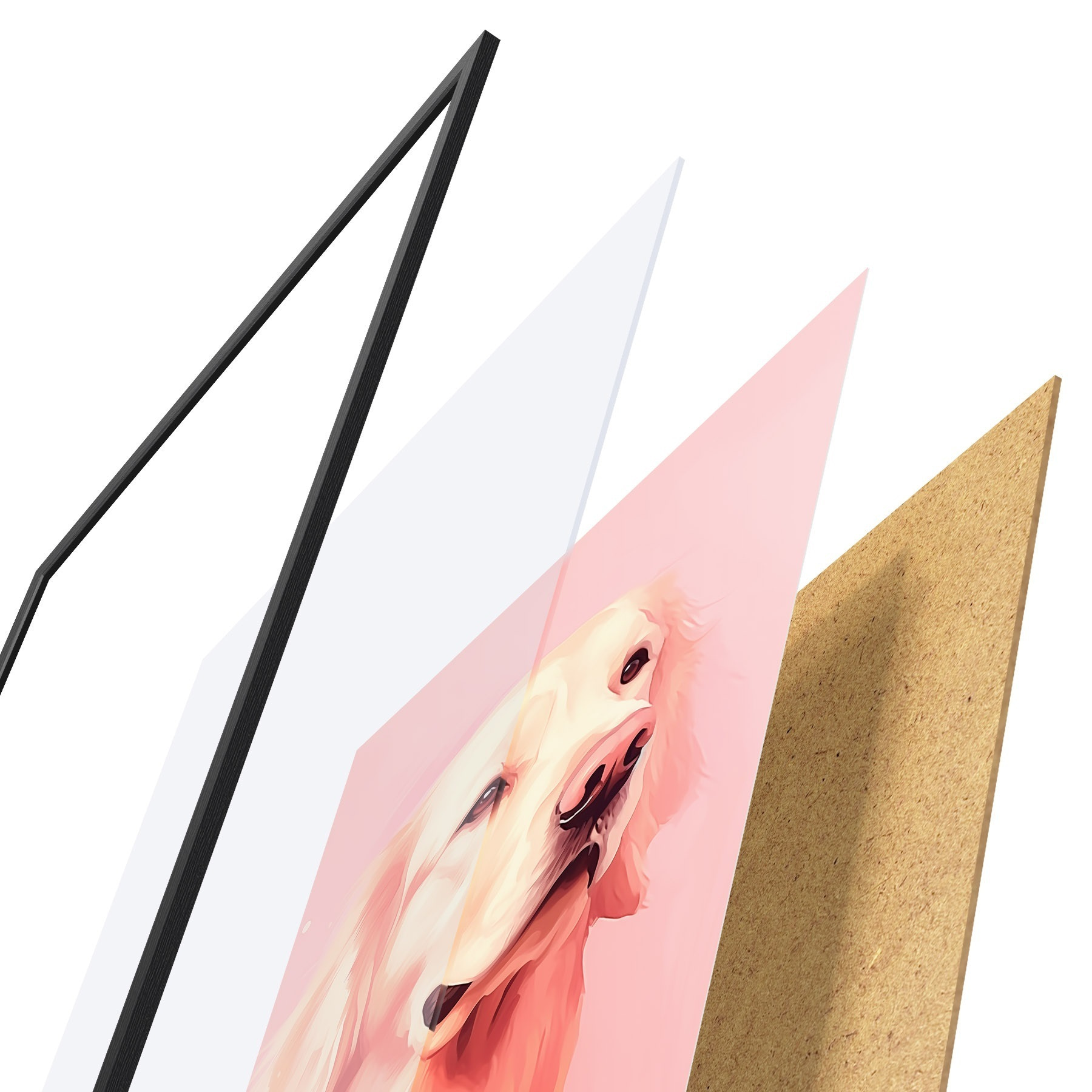 Das Poster besteht aus einem Rahmen, Plexiglas, einem gedruckten Bild und einer Rückwand aus Spanplatten. Dank der Halterungen auf der Rückseite kann das Poster sofort an die Wand gehängt werden.