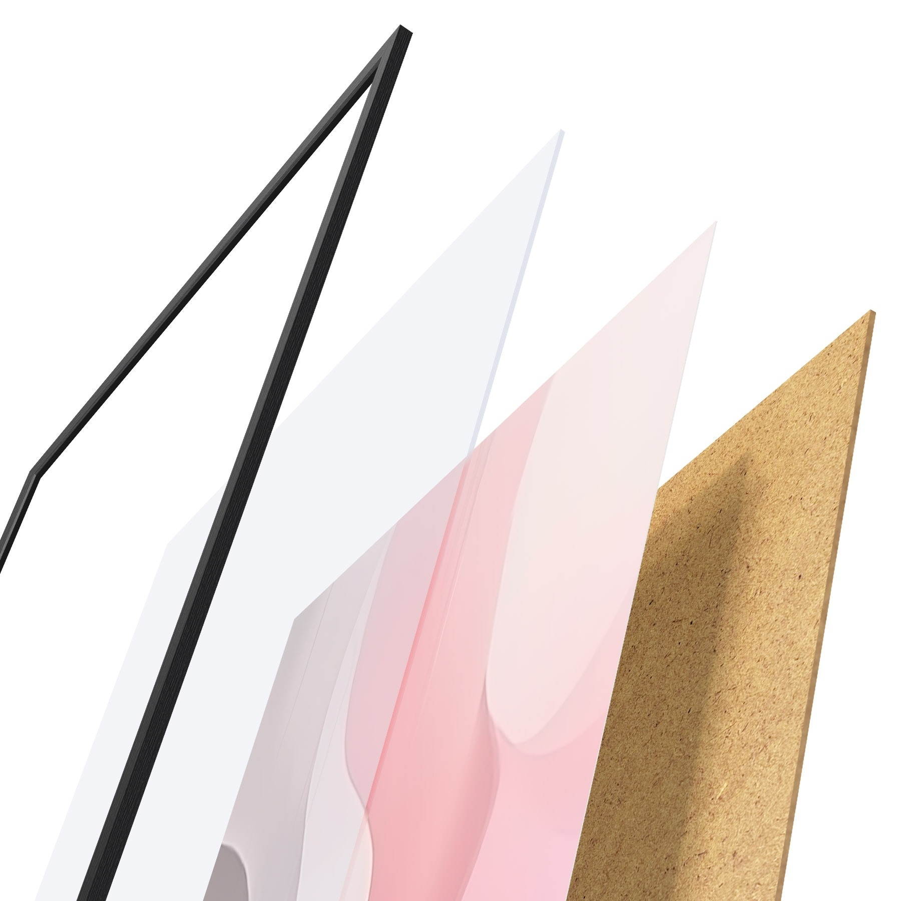 Das Poster besteht aus einem Rahmen, Plexiglas, einem gedruckten Bild und einer Rückwand aus Spanplatten. Dank der Halterungen auf der Rückseite kann das Poster sofort an die Wand gehängt werden.
