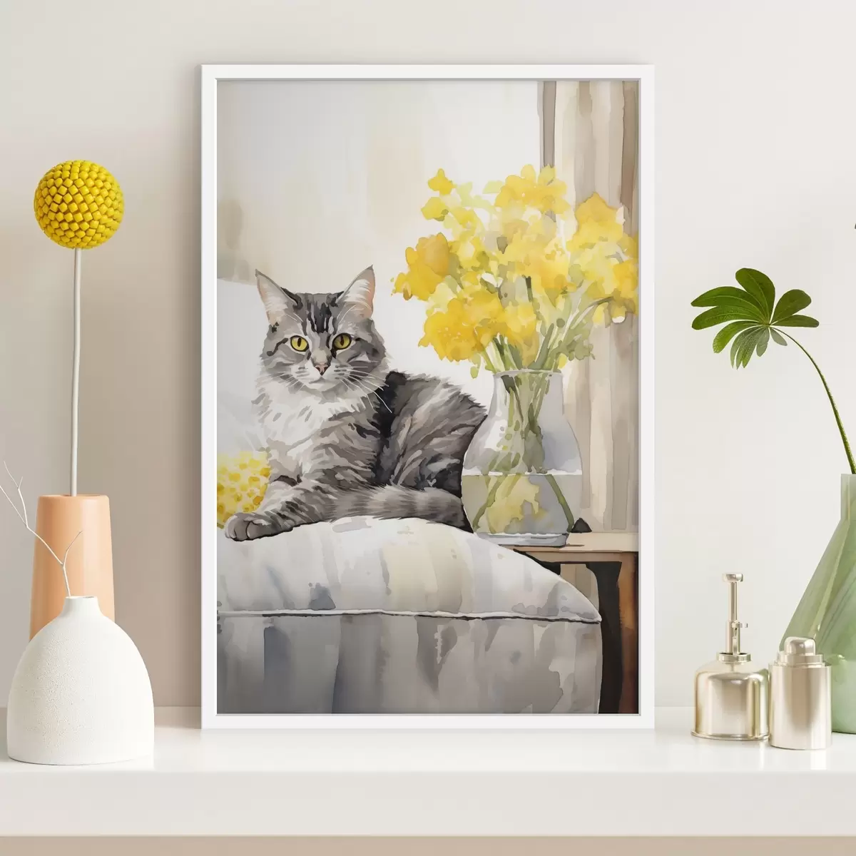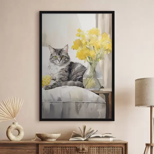 Poster Katze und Blumen f46426