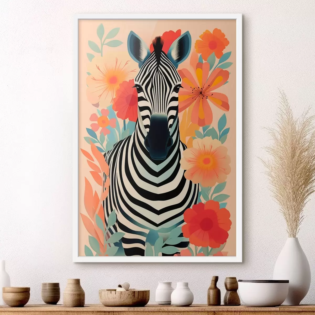 Poster Zebra zwischen Blumen Nr f46457