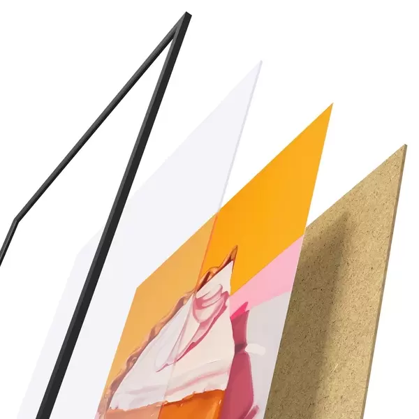 Das Poster besteht aus einem Rahmen, Plexiglas, einem gedruckten Bild und einer Rückwand aus Spanplatten. Dank der Halterungen auf der Rückseite kann das Poster sofort an die Wand gehängt werden.